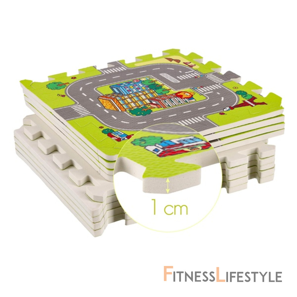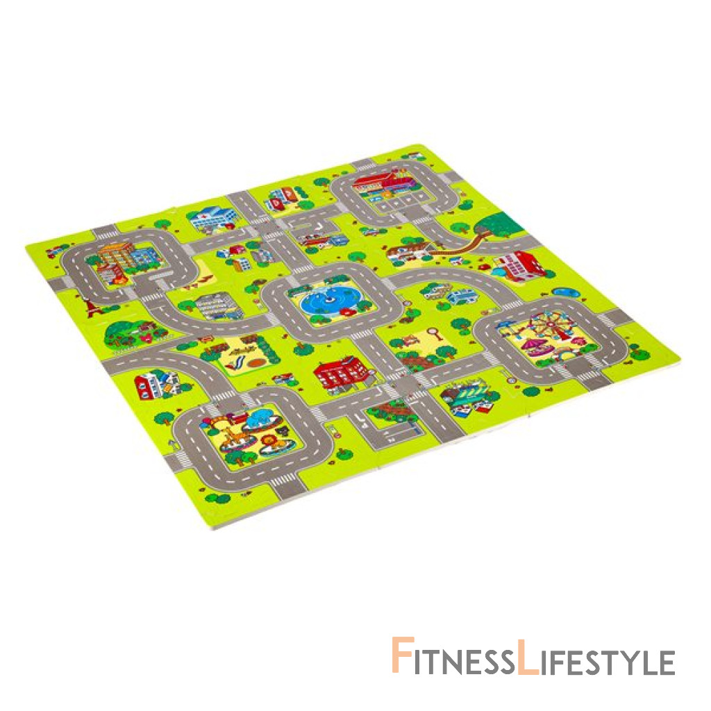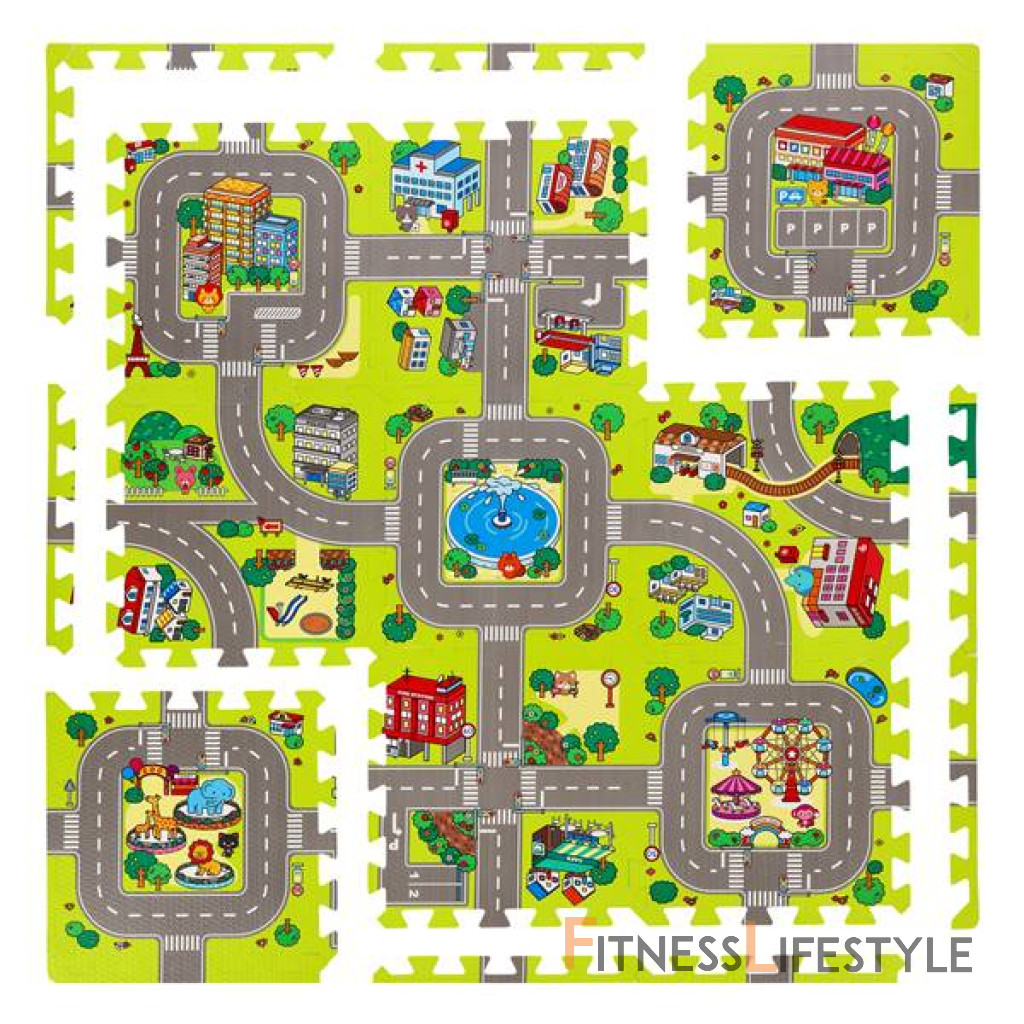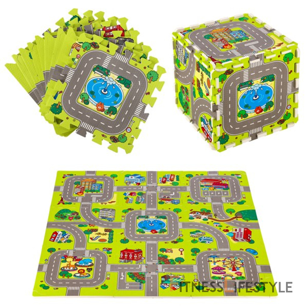 Podložka obsahuje 9 štvorcových dielov, ktoré je možné poskladať pomocou puzzle zámkov. Podložka následne tvorí farebnú mapu mesta s ulicami a ďalšími prvkami mestskej krajiny. Je to nielen skvelá zábava, ale aj príležitosť na učenie prostredníctvom objavovania. Puzzle pomáhajú rozvíjať kognitívne schopnosti a podporujú rozvoj manuálnej zručnosti dieťaťa.