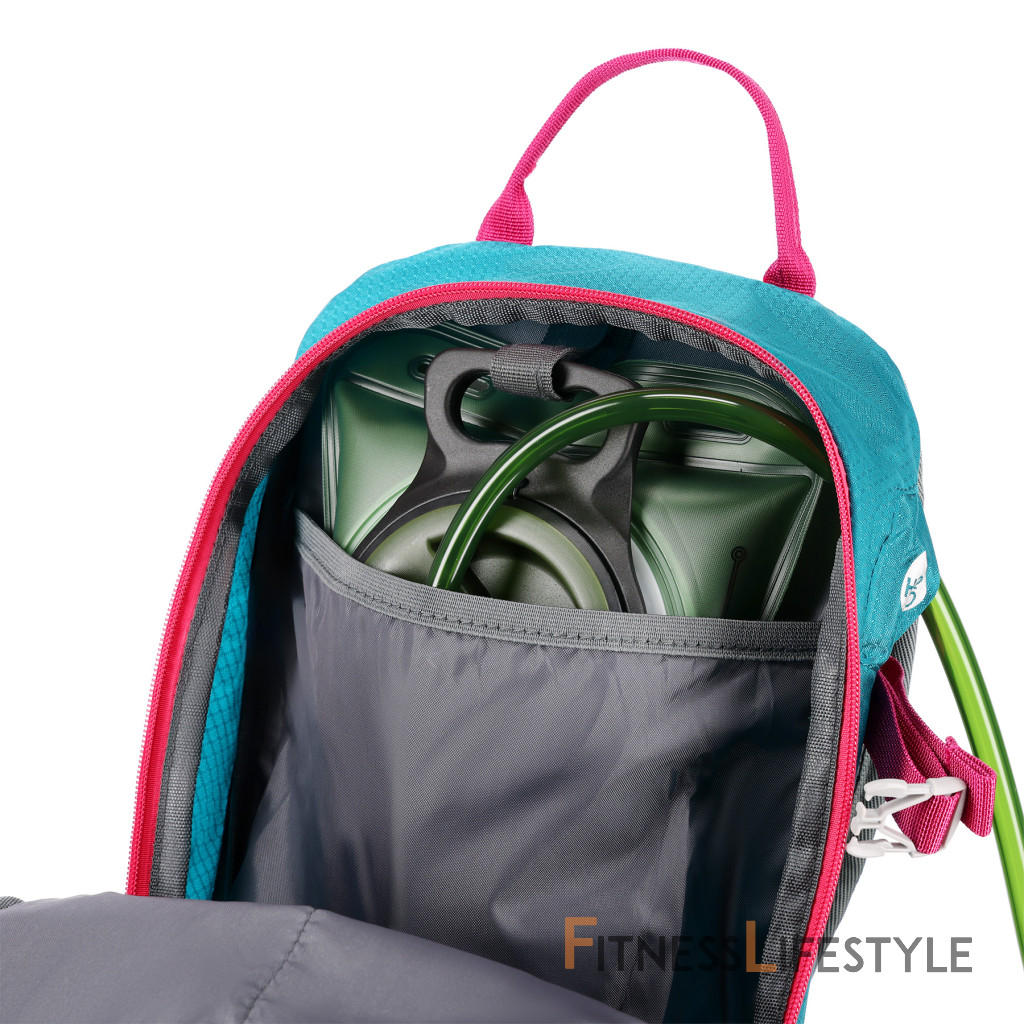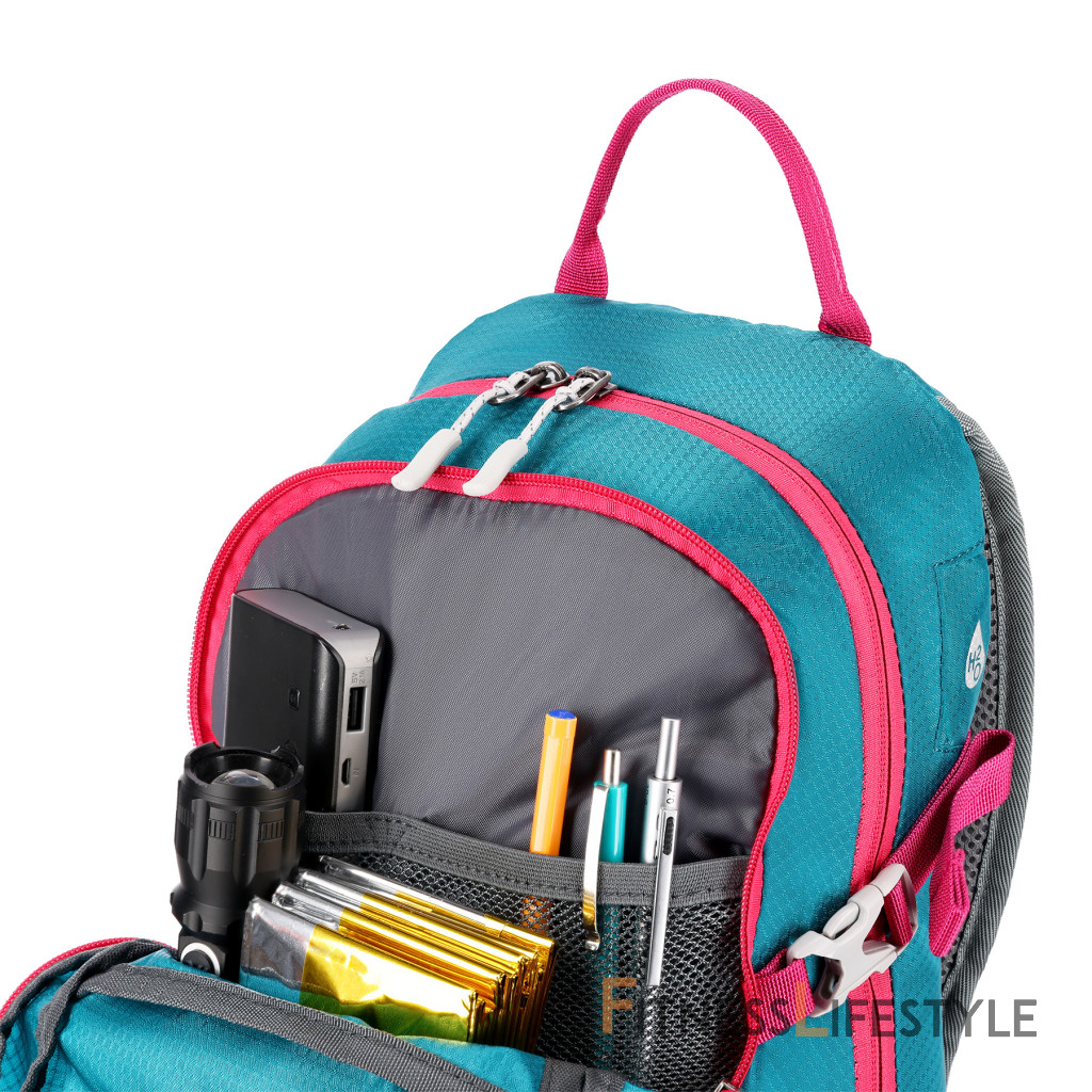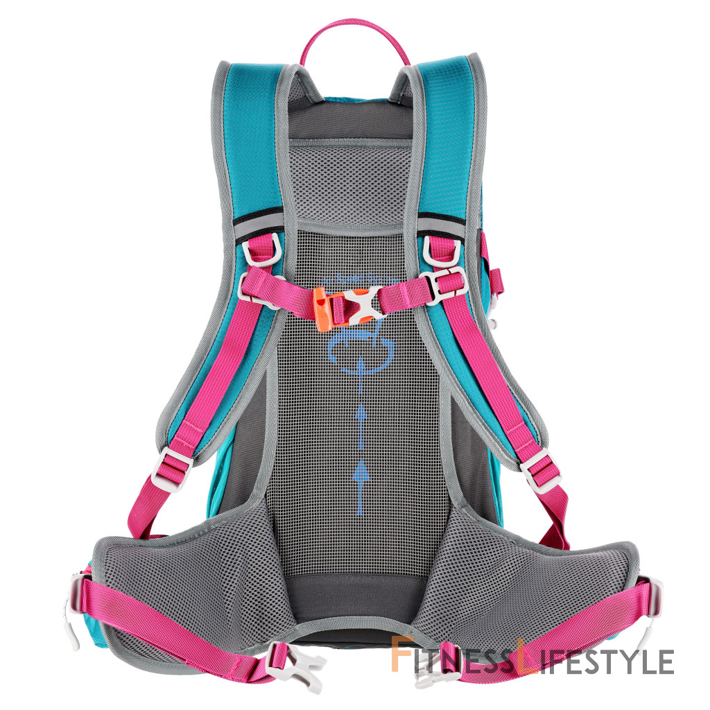 Na pracke hrudného popruhu je umiestnená integrovaná záchranná píšťalka pre väčšiu bezpečnosť v núdzových situáciách. Batoh ďalej ponúka ďalší panel s úchytmi na rôzne príslušenstvo, dve bočné sieťované vrecká a vrecká na zips v bedrovom páse, ideálny na uloženie telefónu alebo iných drobností.
