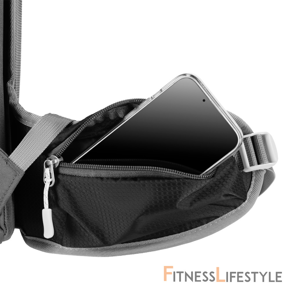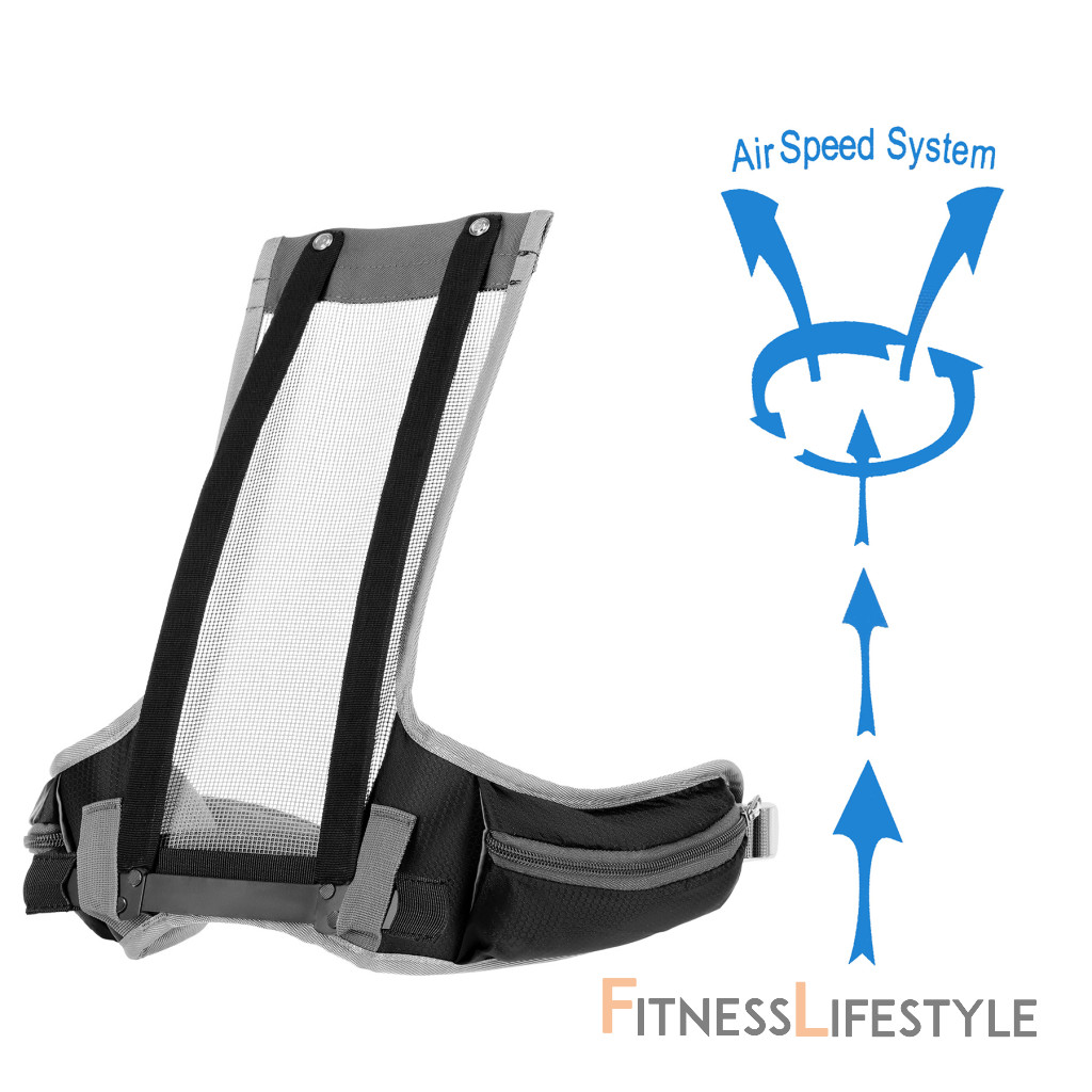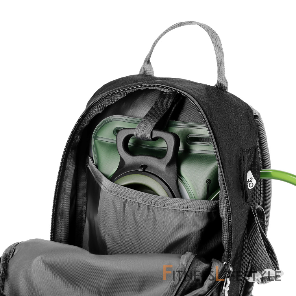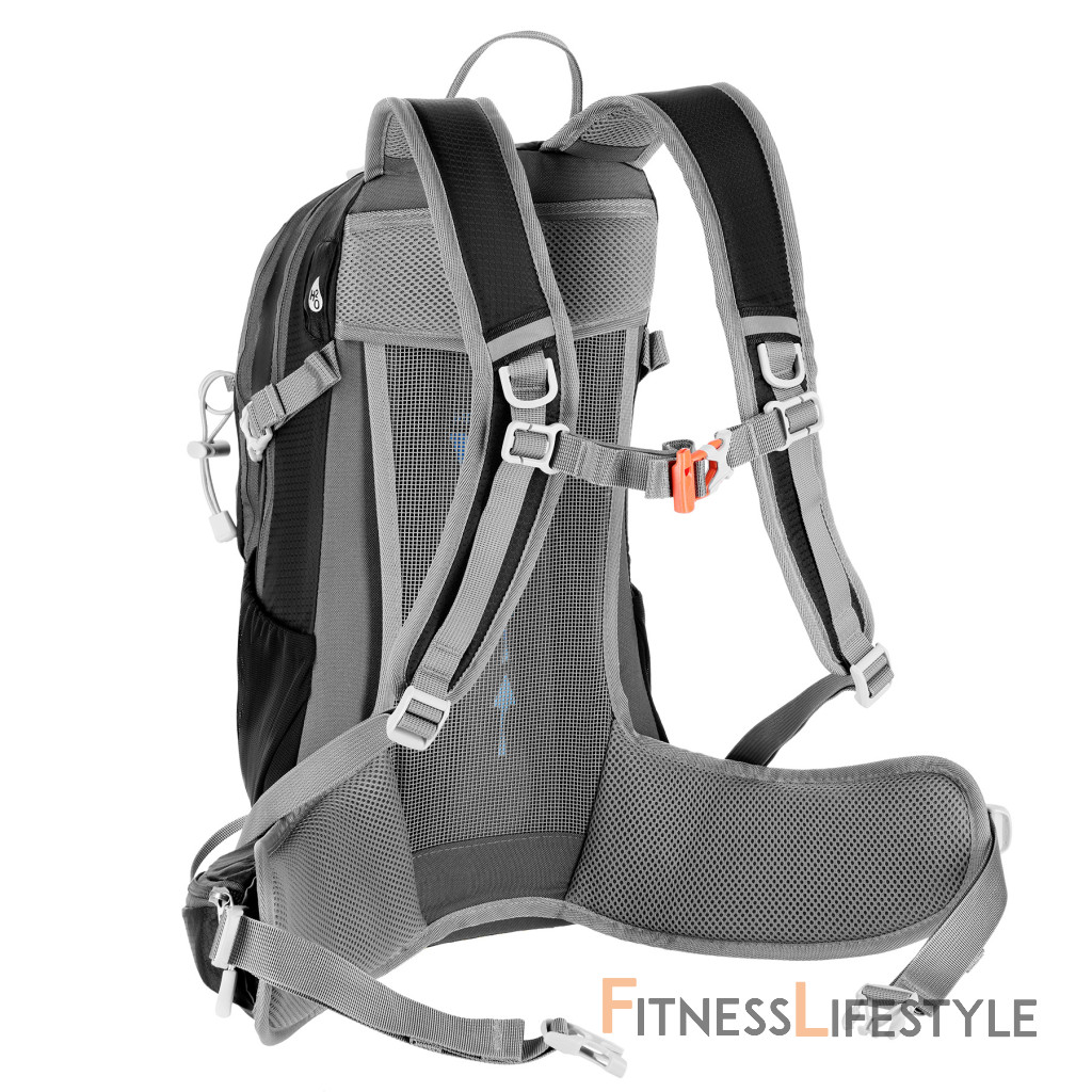 Na pracke hrudného popruhu je umiestnená integrovaná záchranná píšťalka pre väčšiu bezpečnosť v núdzových situáciách. Batoh ďalej ponúka ďalší panel s úchytmi na rôzne príslušenstvo, dve bočné sieťované vrecká a vrecká na zips v bedrovom páse, ideálny na uloženie telefónu alebo iných drobností.