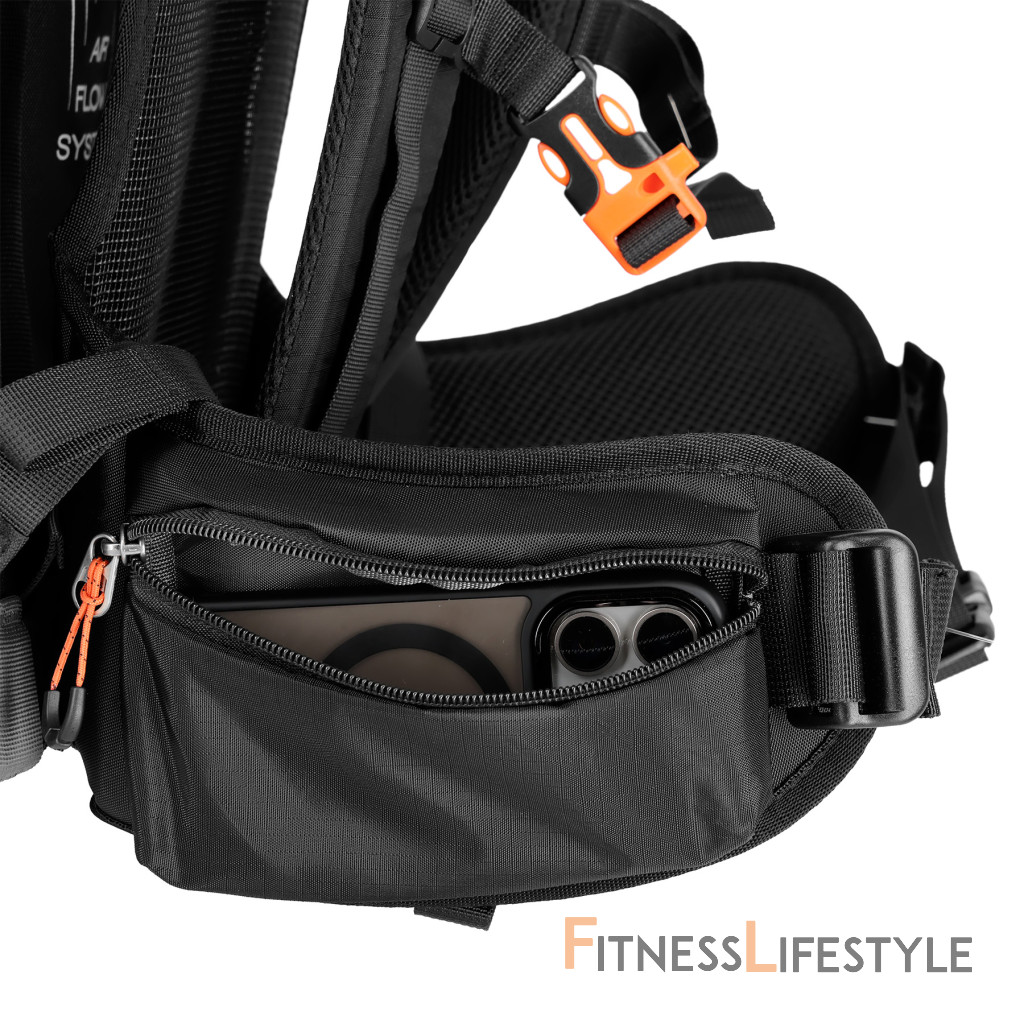 Ergonomický dizajn batohu spolu s nastaviteľnými popruhmi umožňuje dokonalé prispôsobenie telu užívateľa, minimalizuje zaťaženie chrbtice a zvyšuje celkový komfort nosenia. Nosný systém plecniaka tvoria nastaviteľné ramenné popruhy s mäkkým polstrovaním, ktoré znižujú riziko odrenia ramien. Ramenné popruhy sú široké a tvarované tak, aby rovnomerne rozložili hmotnosť na ramená, čo výrazne zvyšuje pohodlie najmä pri dlhých a náročných výpravách. Batoh je tiež vybavený početnými úchytmi, ku ktorým je možné pripevniť ďalšie vybavenie, ako sú trekové palice alebo spací vak, čo ešte zvyšuje jeho funkčnosť.