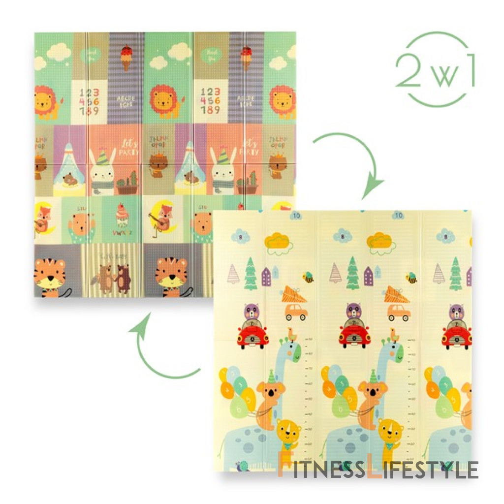 Okrem toho, že podložka slúži k hre, je tiež vzdelávacím nástrojom. Vďaka vyvýšeným čísliciam a písmenám, ktoré pomáhajú pri výučbe čítania, a ilustráciám medvedíkov, tigrov, koal a ďalších zvierat podporuje zmyslový a kognitívny vývoj vášho dieťaťa. Obojstranný dizajn podložky umožňuje meniť prostredie, poskytuje rozmanité podnety a udržuje záujem dieťaťa.