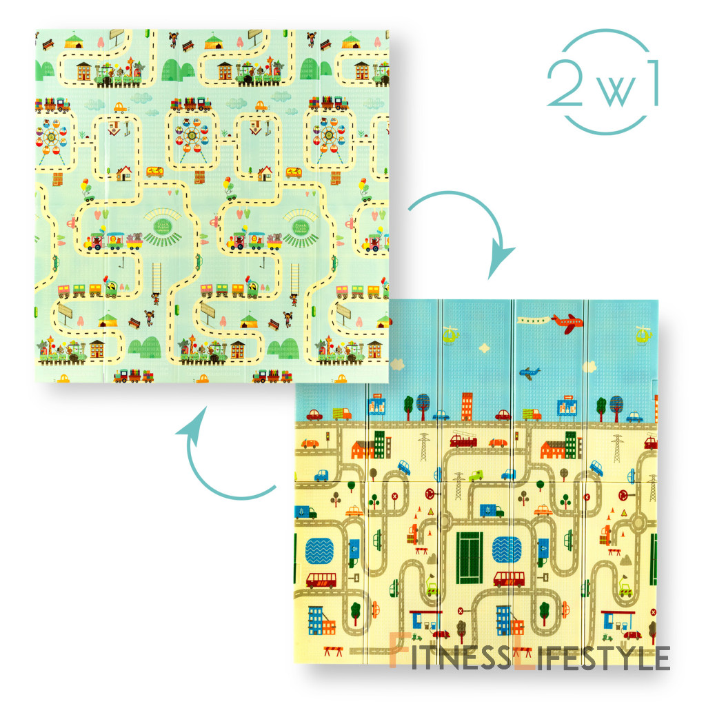 Podložka neslúži iba k hre, ale je tiež vzdelávacou pomôckou. Vďaka vyvýšeným čísliciam a písmenám, ktoré pomáhajú pri výučbe čítania, a ilustráciám rôznych budov, ulíc a vozidiel z mestskej krajiny podporuje zmyslový a kognitívny rozvoj dieťaťa. Obojstranný dizajn podložky umožňuje meniť scenérie, poskytuje rozmanité podnety a udržuje záujem vášho dieťaťa.