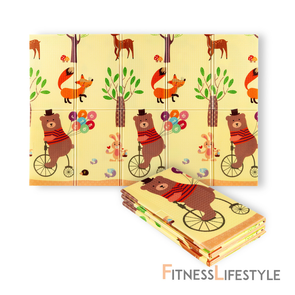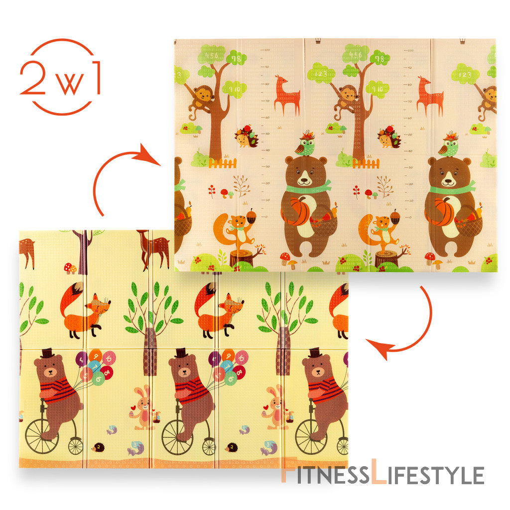 Okrem toho, že podložka slúži k hre, je tiež vzdelávacím nástrojom. Vďaka vyvýšeným čísliciam a písmenám, ktoré pomáhajú pri výučbe čítania, a ilustráciám lesných obyvateľov podporuje zmyslový a kognitívny vývoj vášho dieťaťa. Obojstranný dizajn podložky umožňuje meniť prostredie, poskytuje rozmanité podnety a udržuje záujem dieťaťa.