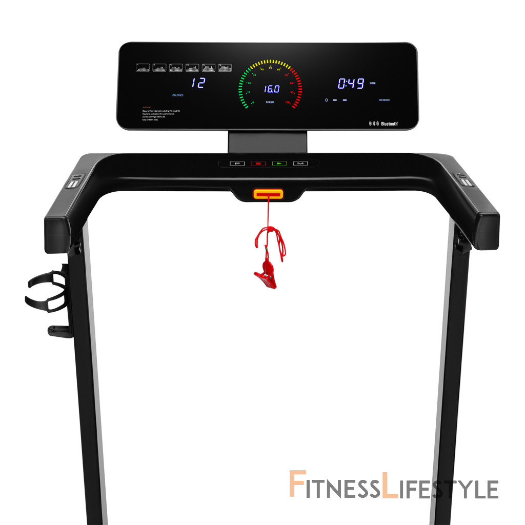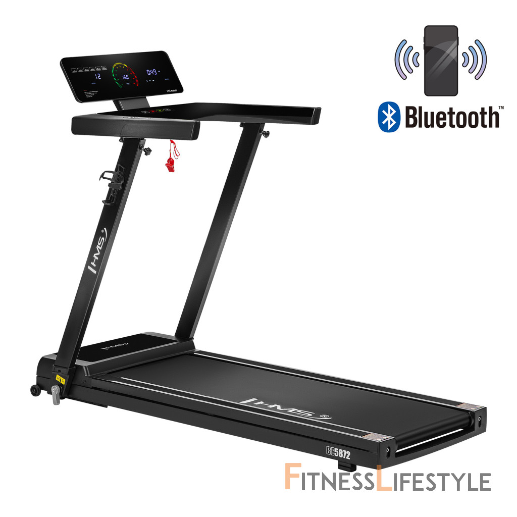 Bežecký pás BE5872 je rozšírený o držiak na tablet a fľašu, takže si môžete počas tréningu vychutnať svoj obľúbený seriál a zároveň dodržiavať pitný režim. Pre ešte väčší pôžitok z cvičenia má trenažér zabudovaný modul Bluetooth a reproduktor, ktorý vám umožní počúvať obľúbenú hudbu a používať tréningové aplikácie, ako sú Kinomap, Zwift a AnyRun.