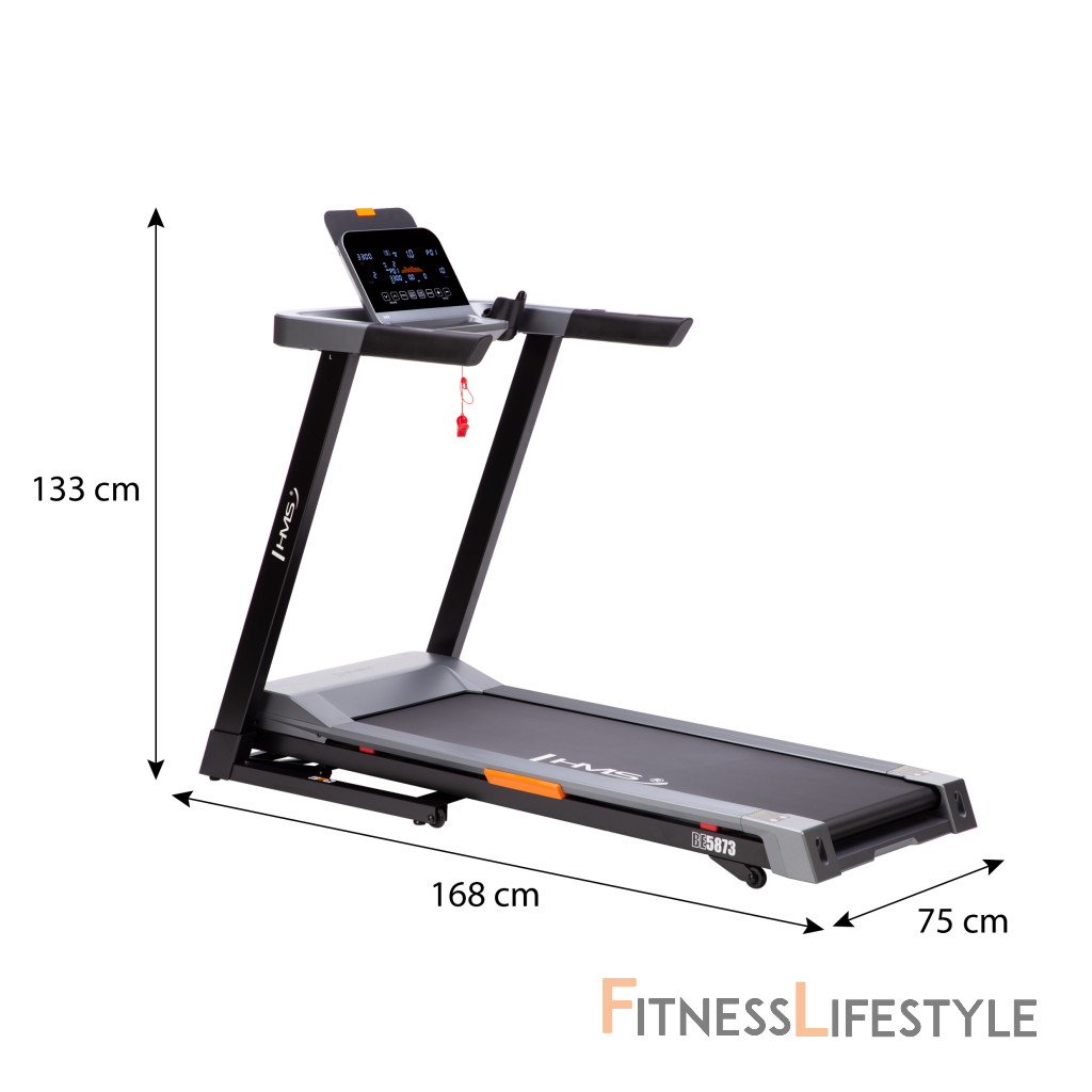 Bežecký pás BE5873 od spoločnosti HMS je funkčné zariadenie pre domáci tréning, ktoré kombinuje pohodlné používanie s modernými riešeniami. Vďaka možnosti nastavenia rýchlosti a sklonu, výkonnému motoru a mnohým tréningovým programom umožňuje BE5873 všestranný a efektívny tréning.