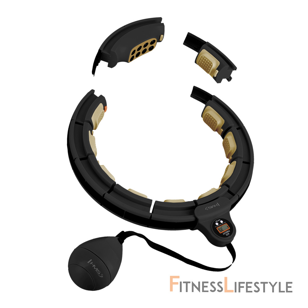 HMS HHM13 je obruč Hula s nastaviteľným obvodom, masážnymi výčnelkami, blokom pre rotujúce hmotnosti magnetickej masáže a číry pult.