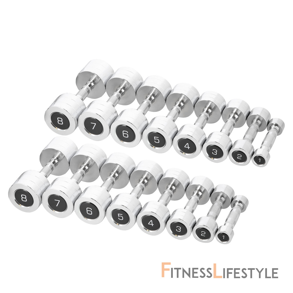 Činky CHD sú vyrobené z vysoko kvalitnej ocele a pokryté chrómovou vrstvou, čo im dodáva elegantný vzhľad a zaručuje dlhú životnosť. Ergonomické rukoväte s vrúbkovaním zaisťujú pevný úchop, takže každý tréning je pohodlný a bezpečný. Vďaka presne nastaveným hmotnostiam (1–8 kg) sú tieto činky ideálne ako na posilňovanie, tak na tvarovanie postavy.