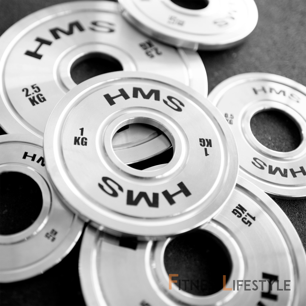 disky v variantoch 5; 10; 15; 20 a 25 kilogramov má farebný pruh zodpovedajúci medzinárodným olympijským štandardom na okraji. To umožňuje rýchlo rozpoznať váhy, čo uľahčuje organizovanie tréningu a dynamických zmien hmotnosti počas série cvičení.