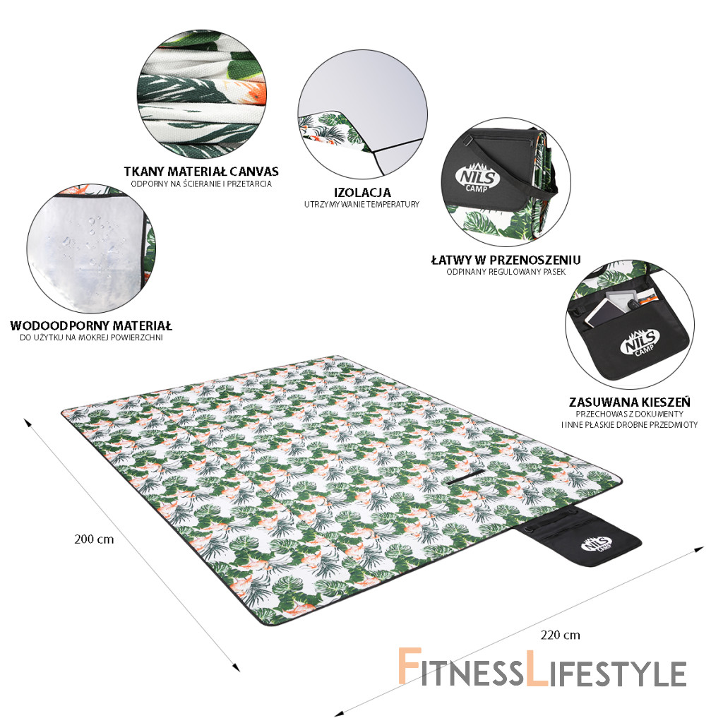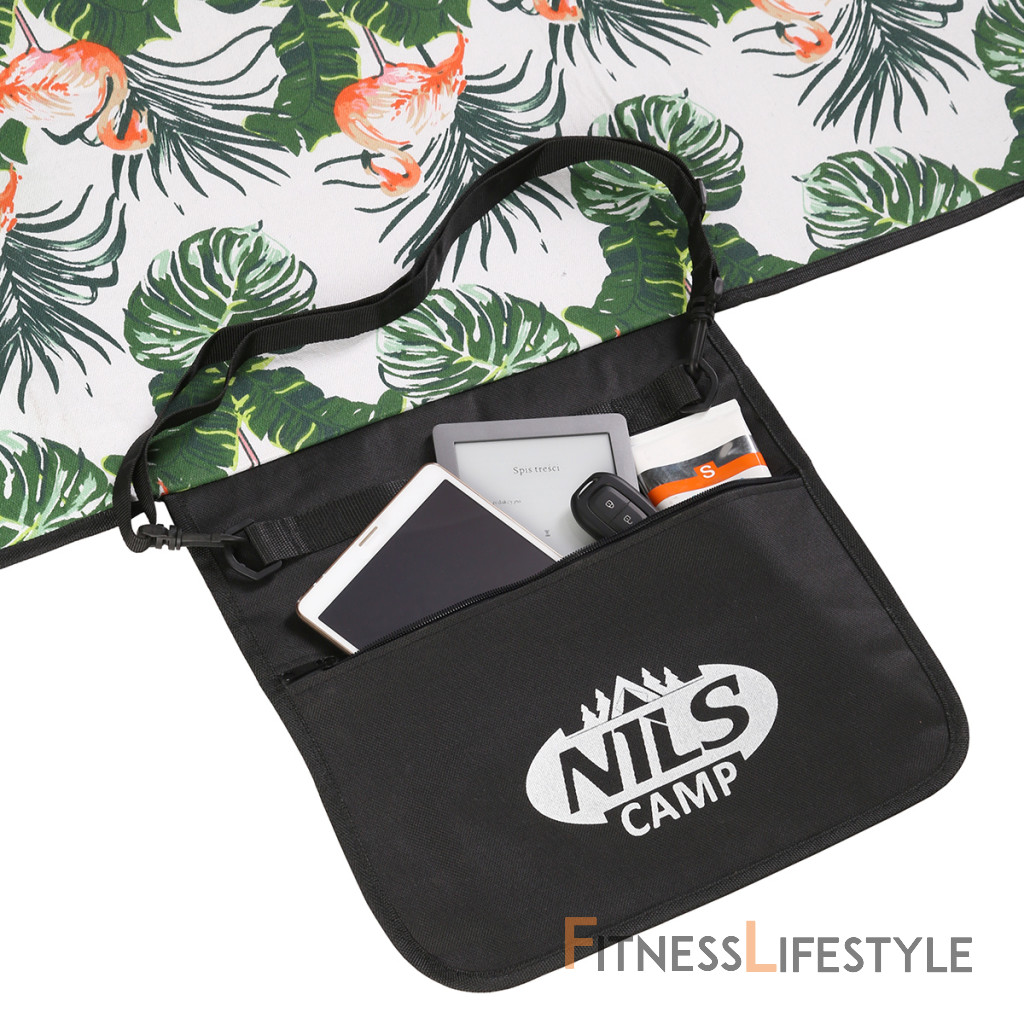 Piknikovú deku NILS Camp NC8008 využijete nielen počas rodinného obeda v parku, ale aj pri vode, alebo napríklad ako podlahu v stane. Materiál vrchnej strany je kanafas. Spodná vrstva je vyrobená z hliníkovej fólie opatrené vodeodolnou úpravou, ktorá tak chráni pred vlhkom a chladom napríklad od mokrej trávy. Pre ľahké prenášanie možno deku zložiť do malej "tašky" vybavené uchom a popruhom cez rameno. V klope sa nachádza vrecko na zips, do ktorej sa zmestia napríklad kľúče, telefón alebo peňaženka.