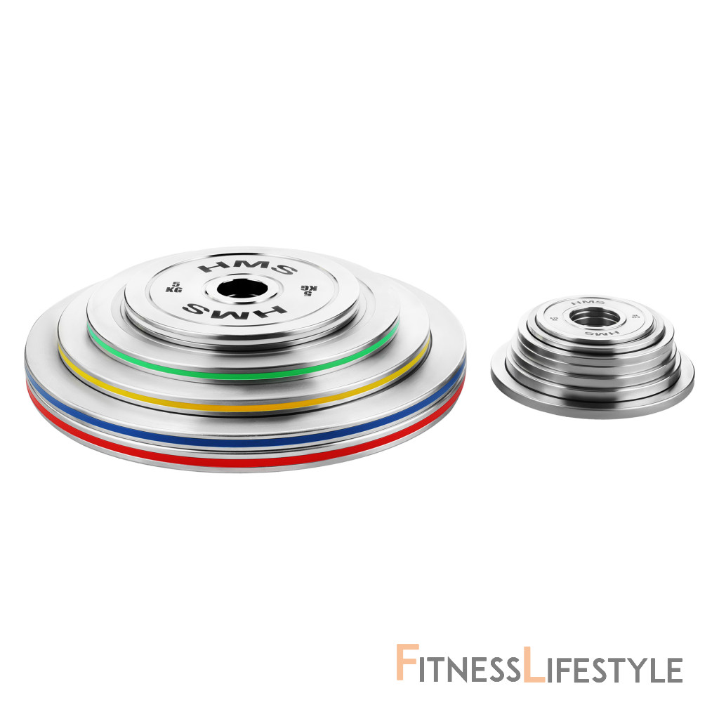 disky v variantoch 5; 10; 15; 20 a 25 kilogramov má farebný pruh zodpovedajúci medzinárodným olympijským štandardom na okraji. To umožňuje rýchlo rozpoznať váhy, čo uľahčuje organizovanie tréningu a dynamických zmien hmotnosti počas série cvičení.