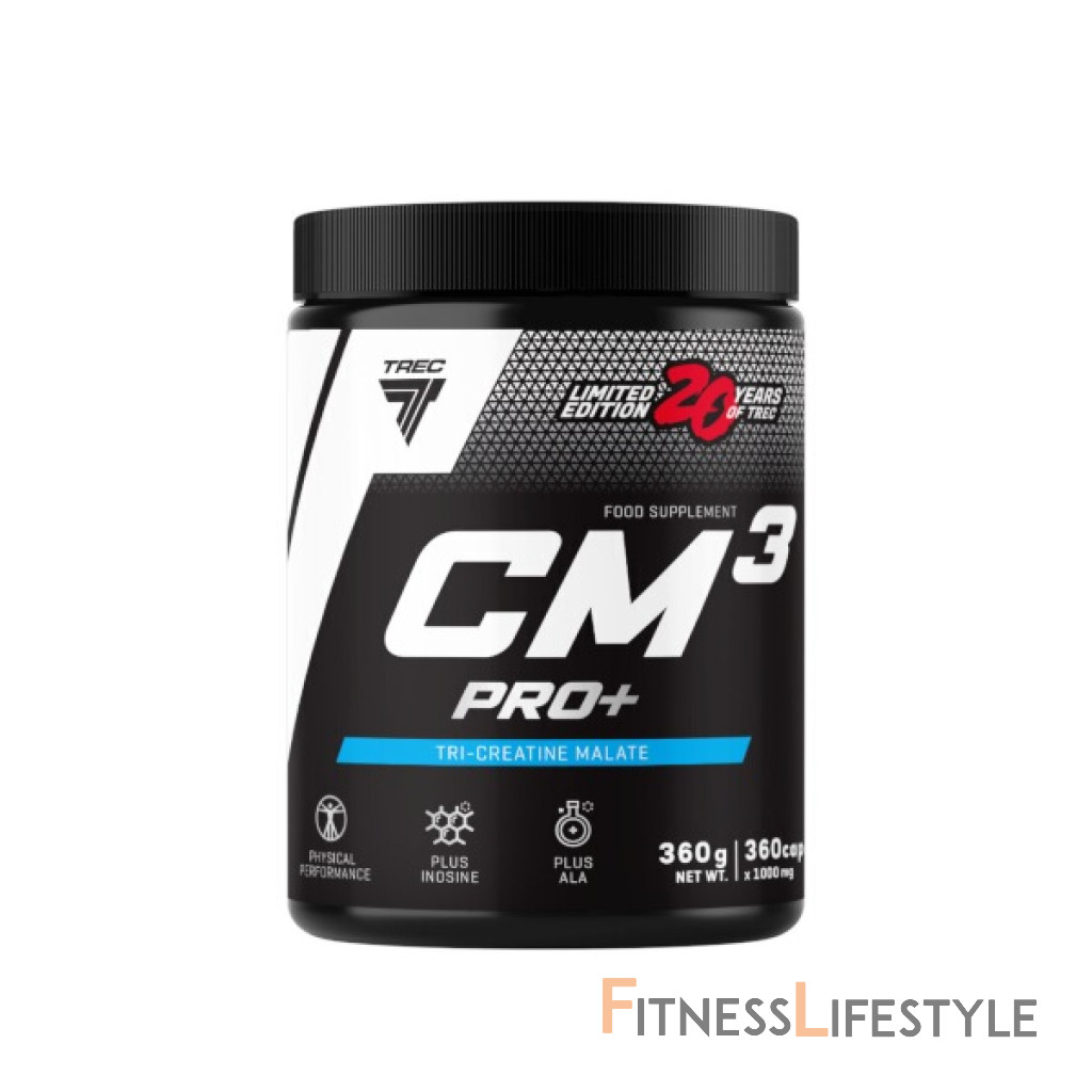 Tri-kreatínový malát je forma kreatínu, ktorá je rezistentná na kyslé prostredie tráviaceho traktu. CM3 Pro+ obsahuje kreatín, ktorý zvyšuje fyzickú výkonnosť po sebe idúcej série krátkodobého cvičenia s vysokou intenzitou. Priaznivý účinok sa dosahuje pri každodennom príjme 3 g kreatínu.