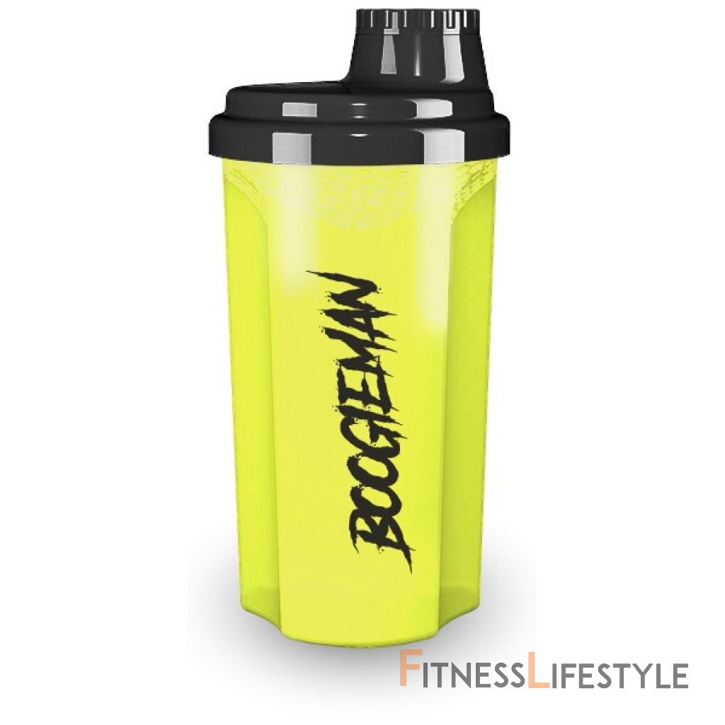 SheJkr Boogieman podľa TREC Nutrition je 700 ml trepač s silom a merací pohár na boku. Každá trepačka má 3 tlačené strany - logo Treck a „#Tecteam“ na prvej stránke, nápis „Boogieman“ na druhej strane a obrázok 4 odmerných šálok s „aktivovaním režimu Beast Mode“ na tretej strane. Shacks sa stanú veľmi profesionálnymi, čo ho robí veľmi dobre pečaťou. Po starostlivom zaskrutkovaní veka a zástrčky nie je možné naliať obsah zo zatvorenej trepačky. Samotná nádoba je mierne priesvitná, takže presne vidíte množstvo kvapaliny. Ideálne na prípravu proteínových koktailov, ziskov a iných výrobkov, ktoré si vyžadujú miešanie s tekutinou. Shaker je odnímateľné sitko.