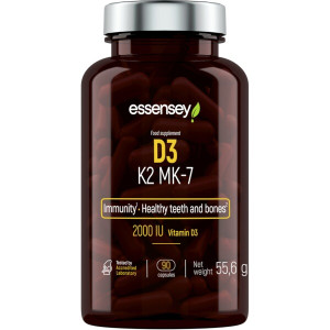 Essensey D3 + K2 z TREC Nutrition na podporu imunity a zdravia zubov a kostí. Vitamín D3 alebo cholecalciferol má v ľudskom tele dôležité funkcie, ako j... Čítať viac