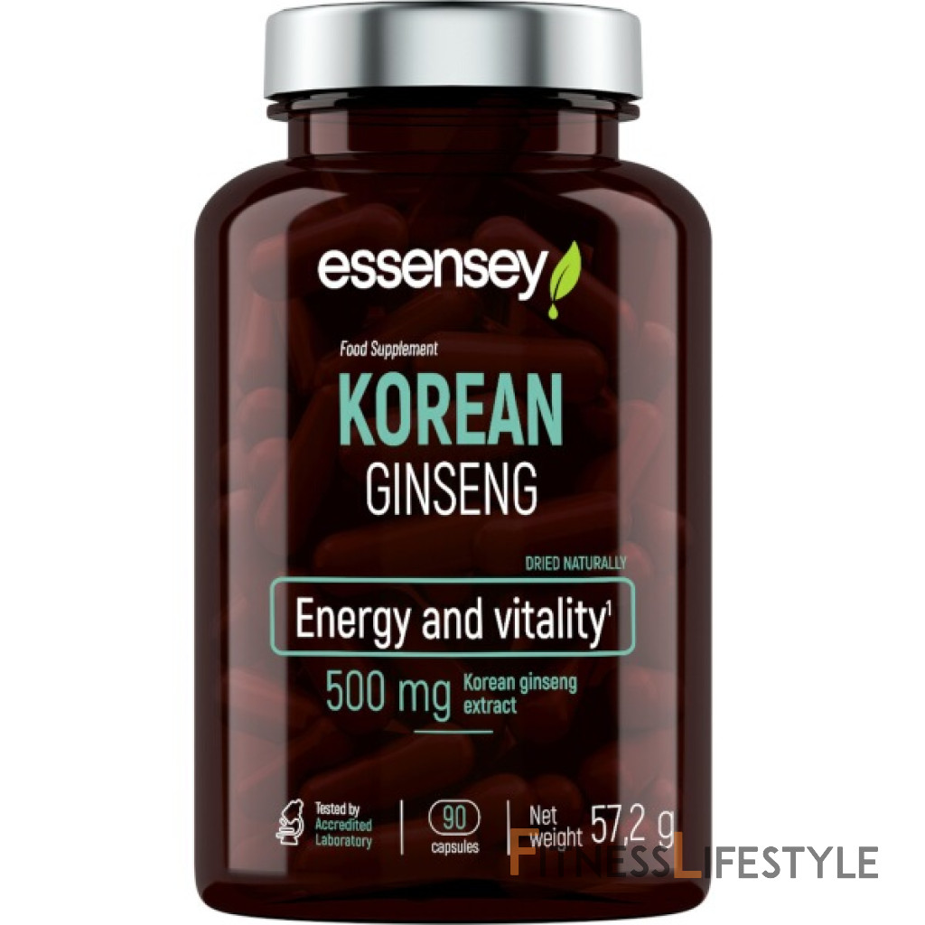 Informácie z značky produktu Essesey Kórejský ženšen . Doplnok potravín. Kapsuly obsahujúce kórejský extrakt ženšenu (Panax Ginseng C.A. Meyer). Kórejský ženšen pomáha udržiavať optimálnu výdrž, energiu a vitalitu.