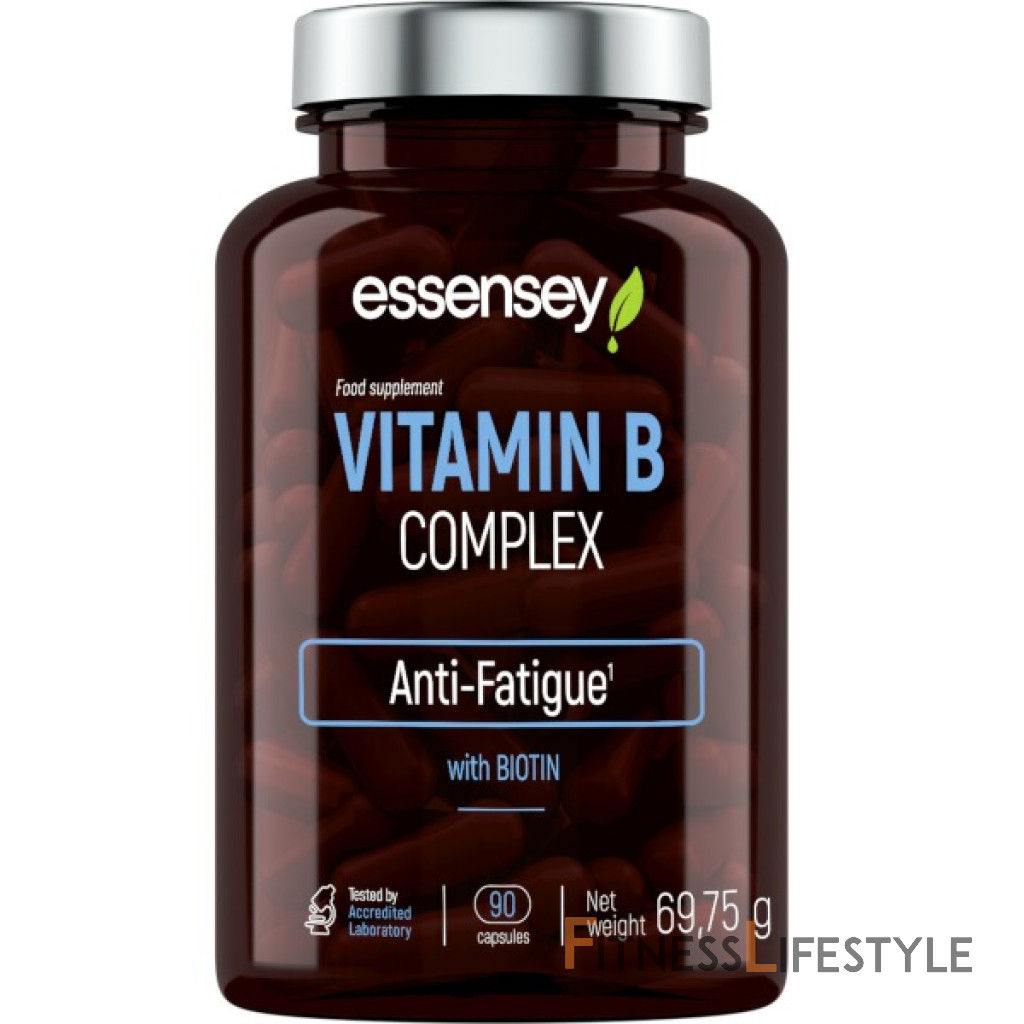 *RHP - Referenčné príjmy pre priemerného dospelého (8400KJ/2000KCal) Informácie z značky produktu Essensey B komplex . Doplnok potravín. Príprava v kapsulách obsahujúcich vitamíny B. riboflavín, niacín, vitamín B6 a vitamín B12 prispieva k zníženiu únavy a vyčerpania. Tiamín, riboflavín, vitamín B6, vitamín B12 a biotín prispievajú k normálnemu energetickému metabolizmu.
