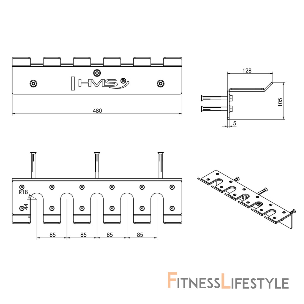 Montáž držiaka je intuitívne - jednoducho ho pripevnite k stene pomocou 3 kotvových bodov. Zahrnuté sú kotvy pre plný betón (v prípade ukotvenia iného muriva odporúčam kupovať vhodný kotviaci materiál). Držiak je vyrobený z oceľového profilu 5 mm, ktorý zaručuje jeho stabilitu a dlhú životnosť aj pri častom používaní.