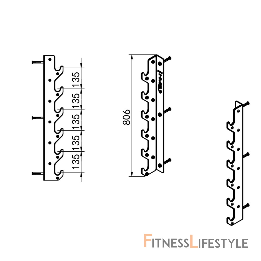 Str46 je držiak pozostávajúci z dvoch nezávislých držiakov, ktoré je možné namontovať v akejkoľvek vzdialenosti od seba, aby sa prispôsobili rôznym typom osí. Vďaka možnosti horizontálneho úložného priestoru až 6 osí a maximálna kapacita zaťaženia 180 kg je ideálnym riešením pre komerčné a domáce telocvične.