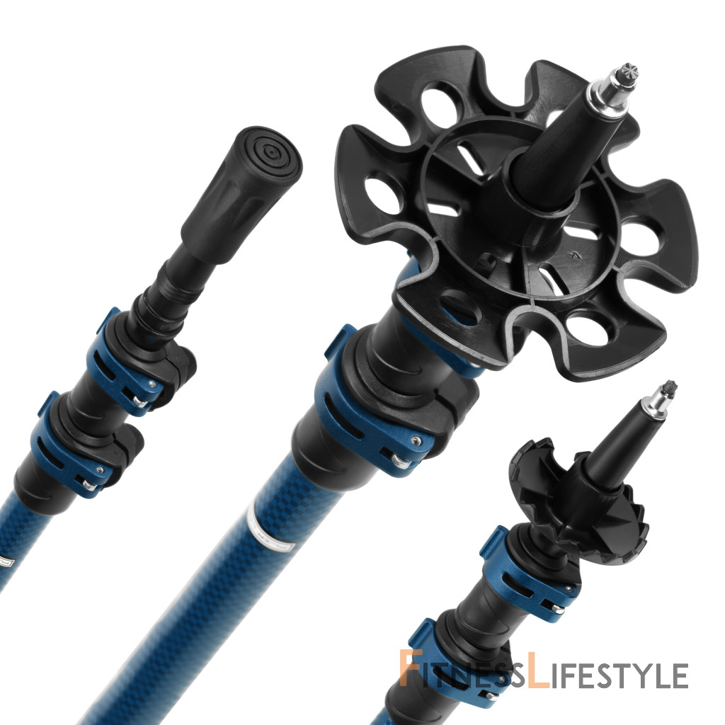 Hols sú vybavené hliníkovými upínacími zámkami, ktoré uľahčujú nastavenie nastavenia rýchleho a bezpečného dĺžky. Tento mechanizmus zaisťuje stabilitu a zabraňuje spontánnemu skráteniu tyčiniek pri chôdzi, dokonca aj v ťažkom teréne.