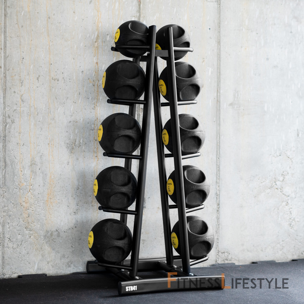 Stojan ponúka viac ako len ukladanie loptičiek - inteligentný dizajn vám umožňuje používať držiaky na ukladanie ďalších doplnkov, ako sú výcvikové tašky, Slam Balla a ďalšie vybavenie. Výsledkom je, že stojan STR41 je univerzálnym riešením pre akýkoľvek fitness priestor.