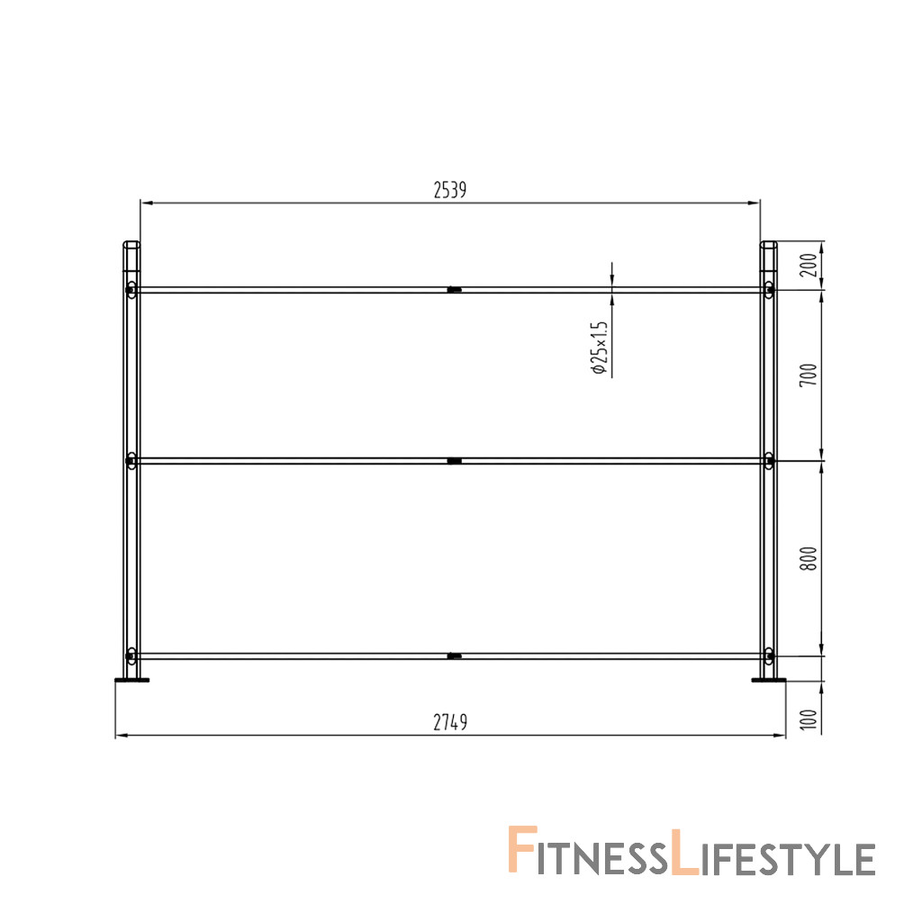 S výškou 180 cm a dĺžkou 275 cm má stojan STR43 dostatočnú kapacitu a stabilitu. Je vyrobený z ocele a nájde ideálnu aplikáciu v profesionálnej telocvični a fitness štúdiu.