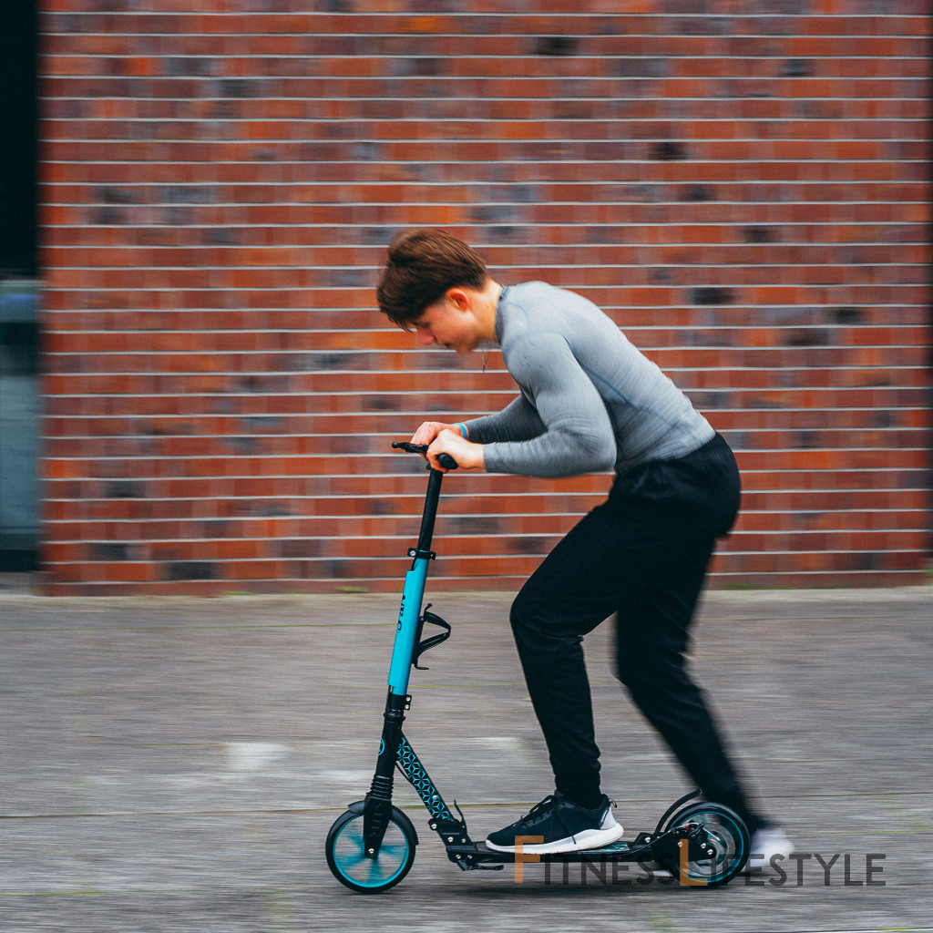 Vďaka veľkým polyuretánovým kolesám s priemerom s priemerom 200 mm a ložiskami ABEC 7 poskytuje skúter extrémne hladkú jazdu. Funguje dokonale na asfaltových a spevnených chodníkoch, zaručuje pohodlie a minimalizuje vibrácie na nerovnomerných povrchoch.