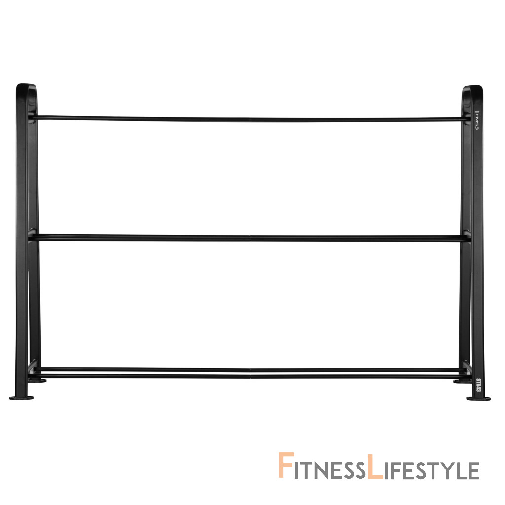 Str43 stojan s tromi úrovňami úložiska umožňuje jasné rozdelenie loptičiek podľa veľkosti a farby. Na spodnej poličke sú čierne gule, uprostred fialovej a na hornej polici grafitu, čo nielenže uľahčuje prístup k zariadeniu, ale tiež dodáva modernému a profesionálnemu vzhľadu výcvikového priestoru.