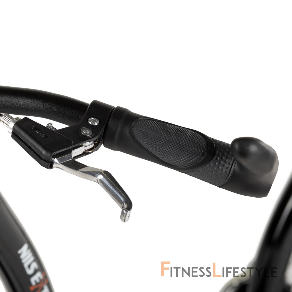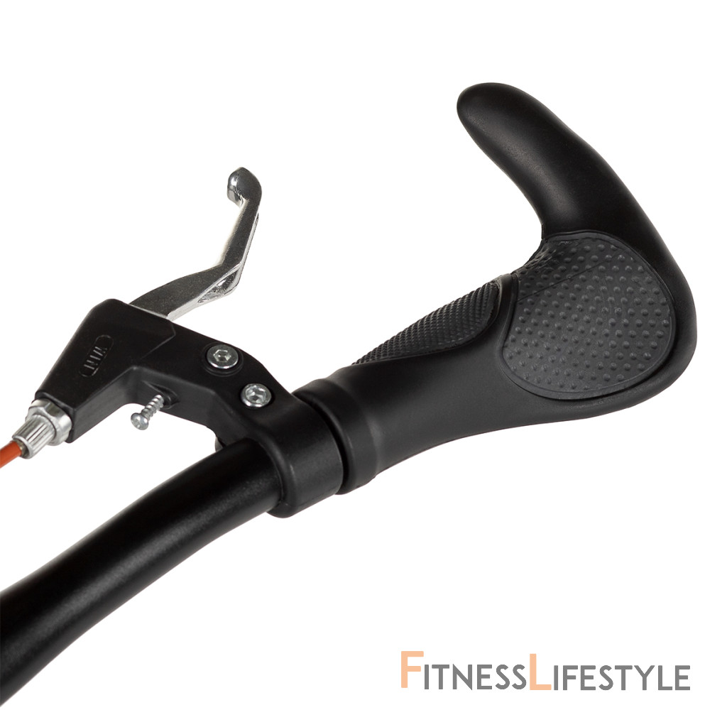 Riadidlá sú s gumou, ergonomicky tvarované úchopy s rohmi pre maximálne pohodlie. Vedľa úchopov sú kovové brzdové páky.