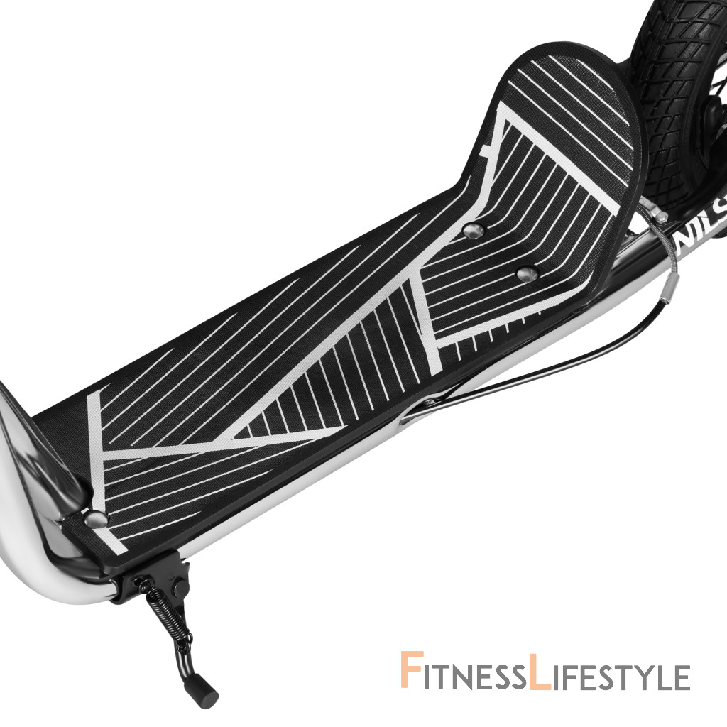 Rám skútrov je vyrobený z trvanlivej zliatiny hliníka, ktorá zaisťuje nízku hmotnosť s vysokým odporom voči mechanickému poškodeniu. Tento dizajn sa odráža v ľahkej riadenosti a dlhej životnosti zariadenia aj pri častom používaní. Ostatné oceľové prvky, ako sú riadidlá a stonky, zvyšujú tuhosť celej konštrukcie, zatiaľ čo celková hmotnosť zostáva nízka - skútri váži iba 8,5 kg.