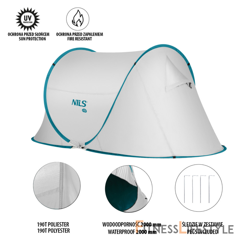 Self -Reinforded Beach Stan Nils Camp NC3743 je ideálnym riešením pre každého milovníka pobytov pri vode. Stan NC3743 sa rozkladá, je odolný a funkčný, ale hlavne vás chráni pred slnečnými lúčmi, poskytuje tieň a zároveň vás chráni pred vetrom.