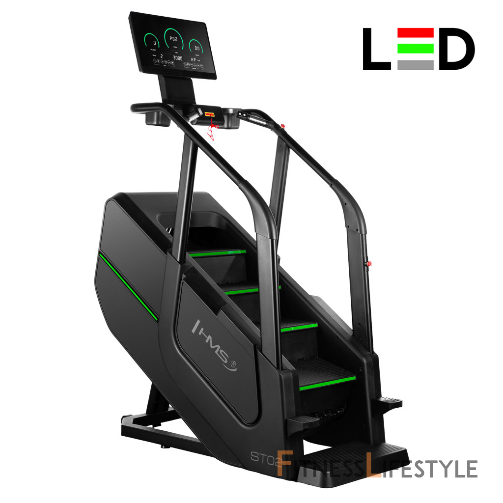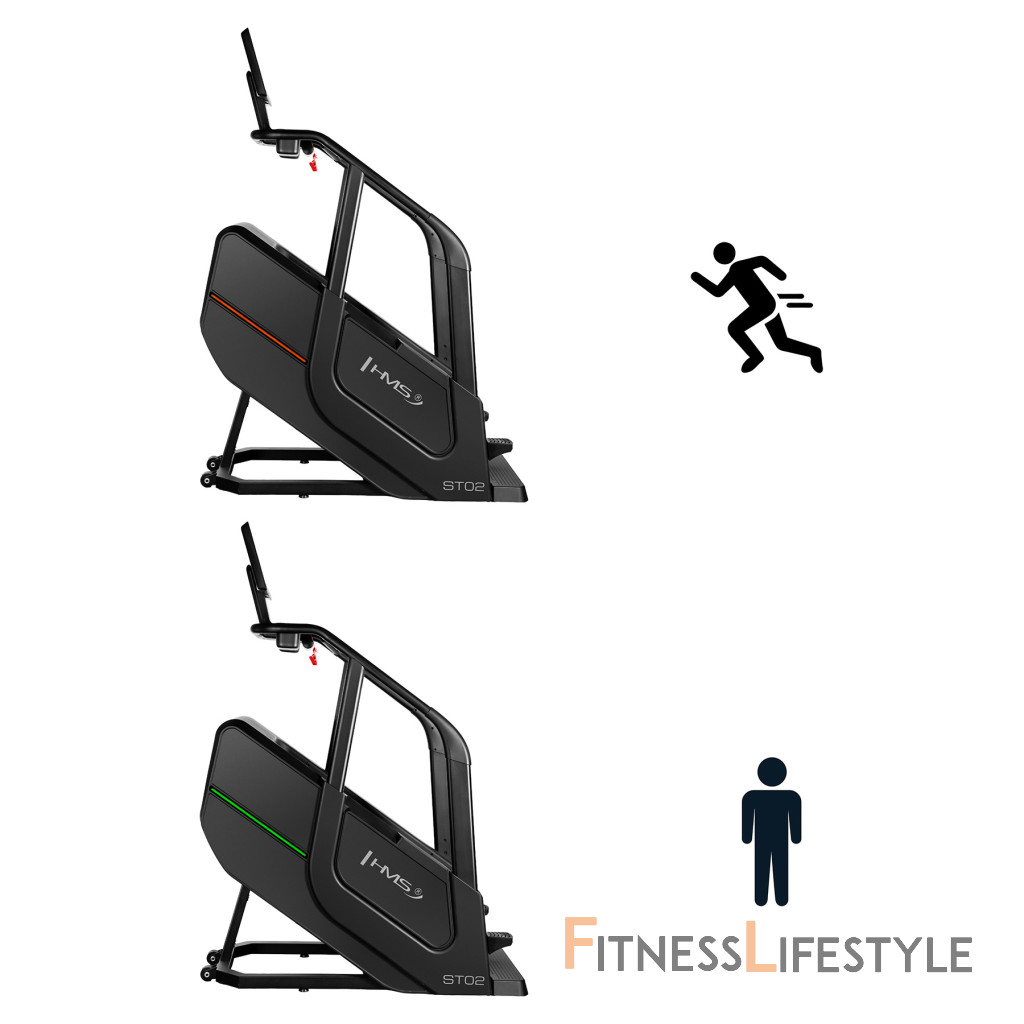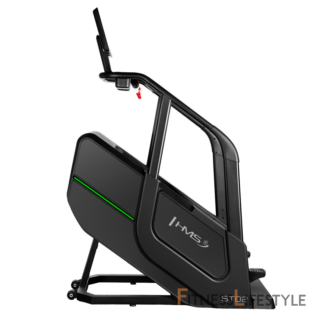Schody ST02 je vybavený funkciami merania rýchlosti, počtu krokov, vystúpenej výšky, času, spálených kalórií, tepovej frekvencie a telesného tuku, ktoré vám umožnia sledovať vaše pokroky a prispôsobiť tréning vašim individuálnym cieľom. Bezdrôtová nabíjačka umožňuje pohodlné nabíjanie mobilných zariadení počas cvičenia. Intuitívny ovládací panel s tlačidlami pre reguláciu rýchlosti a tlačidlami štart/stop na držadlách zaisťuje jednoduché a rýchle ovládanie.