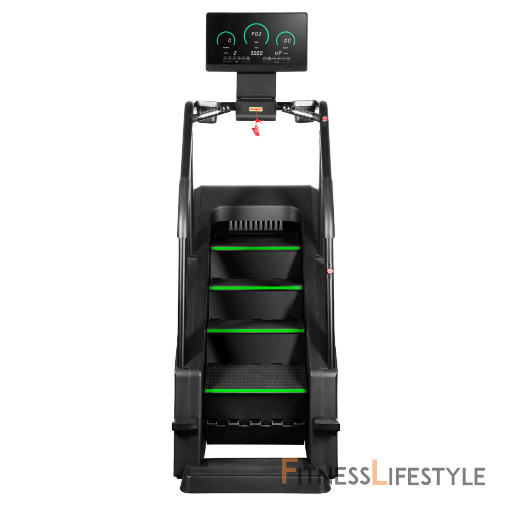 Stroj má robustnú konštrukciu, ktorá zaručuje stabilitu pri intenzívnom tréningu. Protišmykové schody pod uhlom 35 stupňov zaisťujú pohodlie a bezpečnosť pri používaní. Samoblokovací systém schody automaticky zastaví, ak je zaťaženie menšie ako 30 kg.