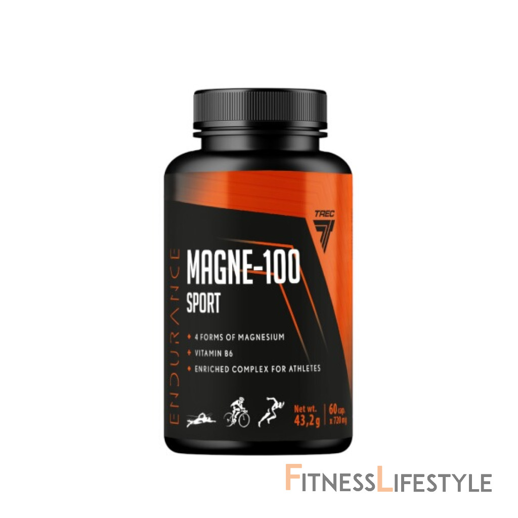 Magne-100 Sport je doplnok výživy obsahujúcej kombináciu 4 foriem oxidu horčíka, citrát, laktátu a uhličitanu, ktorý vyniká vo vynikajúcej rozpustnosti a biologickej dostupnosti. Každá dávka (2 kapsuly) poskytuje 375 mg horčíka, čo zodpovedá 100 % odporúčanej dennej dávky.