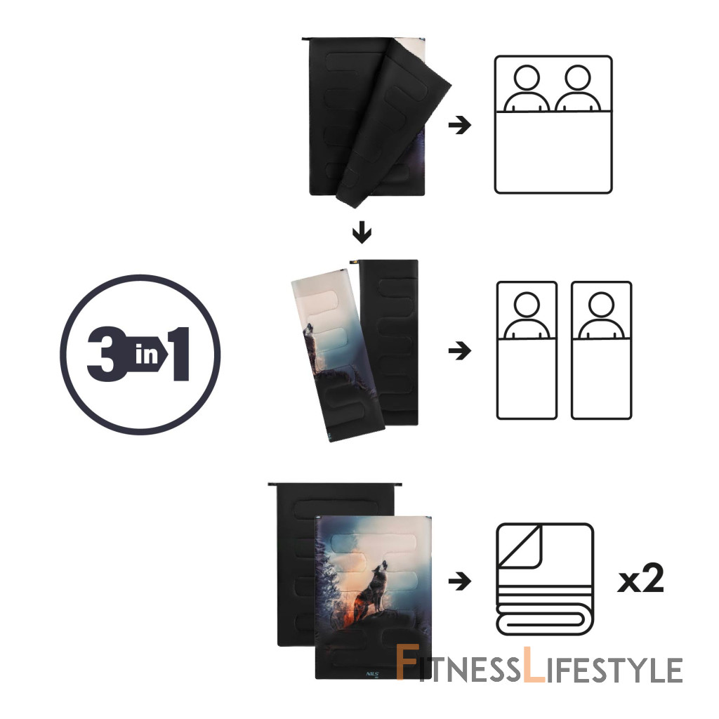 NC3601 spacák z Nils Camp je jedinečný model určený pre maximálnu funkčnosť a pohodlie počas kempingu, kempingu alebo prenocovania v prírode. Jeho konštrukcia umožňuje použitie v troch rôznych variantoch - ako dvojitý spacák, dva samostatné spacáky alebo dve nezávislé prikrývky. Toto riešenie je ideálne pre páry aj pre samostatných cestujúcich. Systém zipsu umožňuje spacákom ľahko a rýchlo sa oddeliť alebo kombinovať, čo poskytuje veľkú slobodu používania a umožňuje vám ich prispôsobiť akejkoľvek situácii.