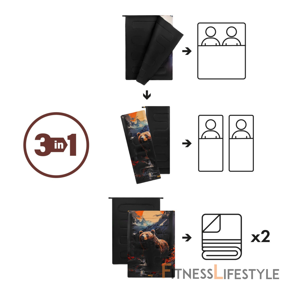 NC3601 spacák z Nils Camp je jedinečný model určený pre maximálnu funkčnosť a pohodlie počas kempingu, kempingu alebo prenocovania v prírode. Jeho konštrukcia umožňuje použitie v troch rôznych variantoch - ako dvojitý spacák, dva samostatné spacáky alebo dve nezávislé prikrývky. Toto riešenie je ideálne pre páry aj pre samostatných cestujúcich. Systém zipsu umožňuje spacákom ľahko a rýchlo sa oddeliť alebo kombinovať, čo poskytuje veľkú slobodu používania a umožňuje vám ich prispôsobiť akejkoľvek situácii.