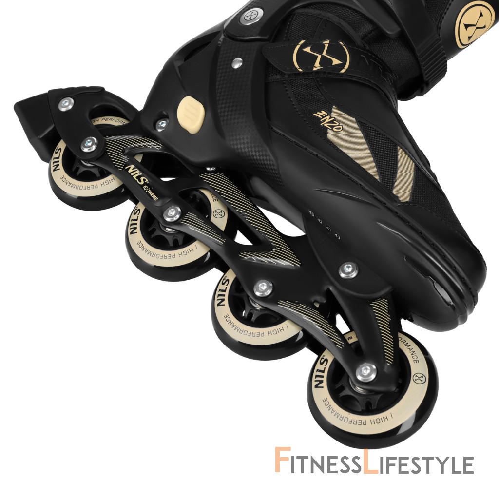 škrupina korčule je vyrobená z odolného polyetylénu, ktorý poskytuje optimálnu podporu členku a komfortu. Rám hliníkového kolesa sa vyznačuje jeho ľahkosťou a odporom voči mechanickému poškodeniu. To dáva používateľovi stabilitu a lepšiu kontrolu nad jazdou.