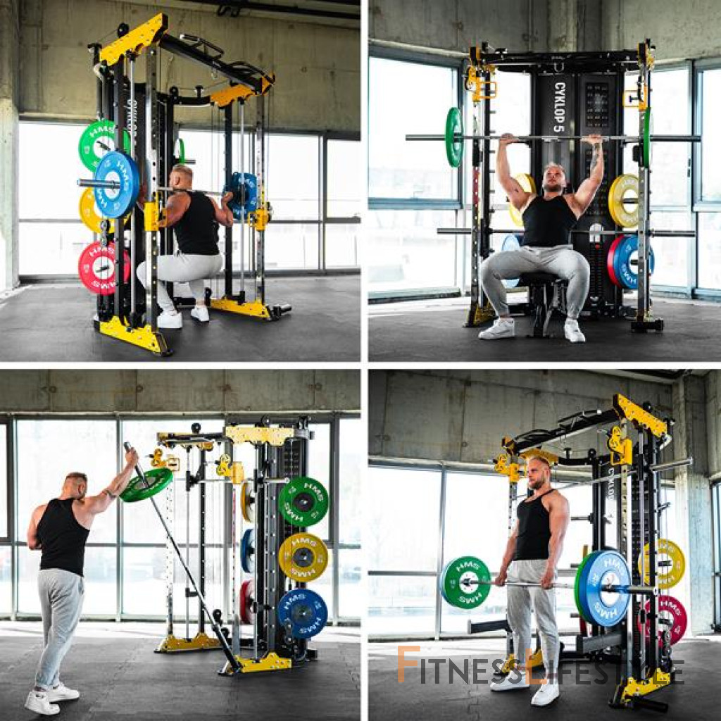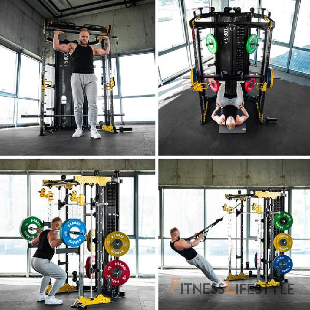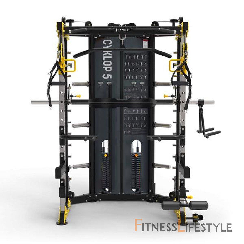 Multipress cyklop 5 z HMS je zariadenie pre ľudí, ktorí hľadajú nekompromisnú kvalitu, bezpečnosť a maximálnu funkčnosť v jednom zariadení. Tento stroj umožňuje úplný a efektívny silový tréning v jednom kompaktnom dizajne. Zariadenie obsahuje: