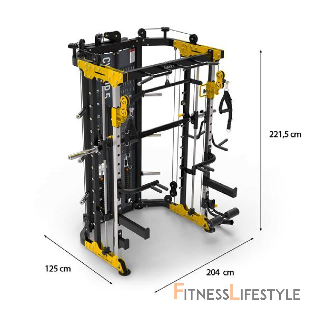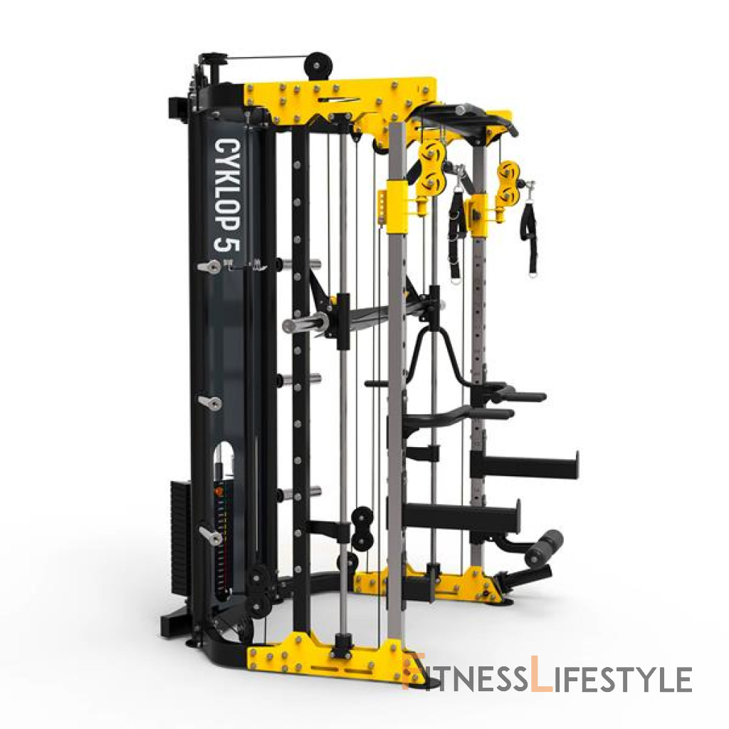Cyclop 5 je pokročilý tréningový stroj, ktorý kombinuje funkčnosť multipress s bezpečnosťou a komfortom. Vďaka dvom nezávislým 90 kg hmotnosti váh, početných adaptérov a doplnkov ponúka cyklop 5 komplexného výcviku celého tela - od svalov hornej polovice po nohy.