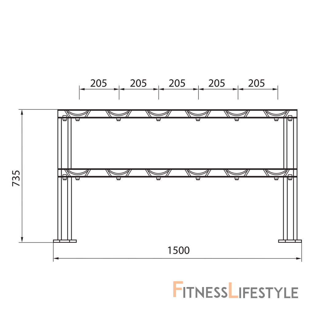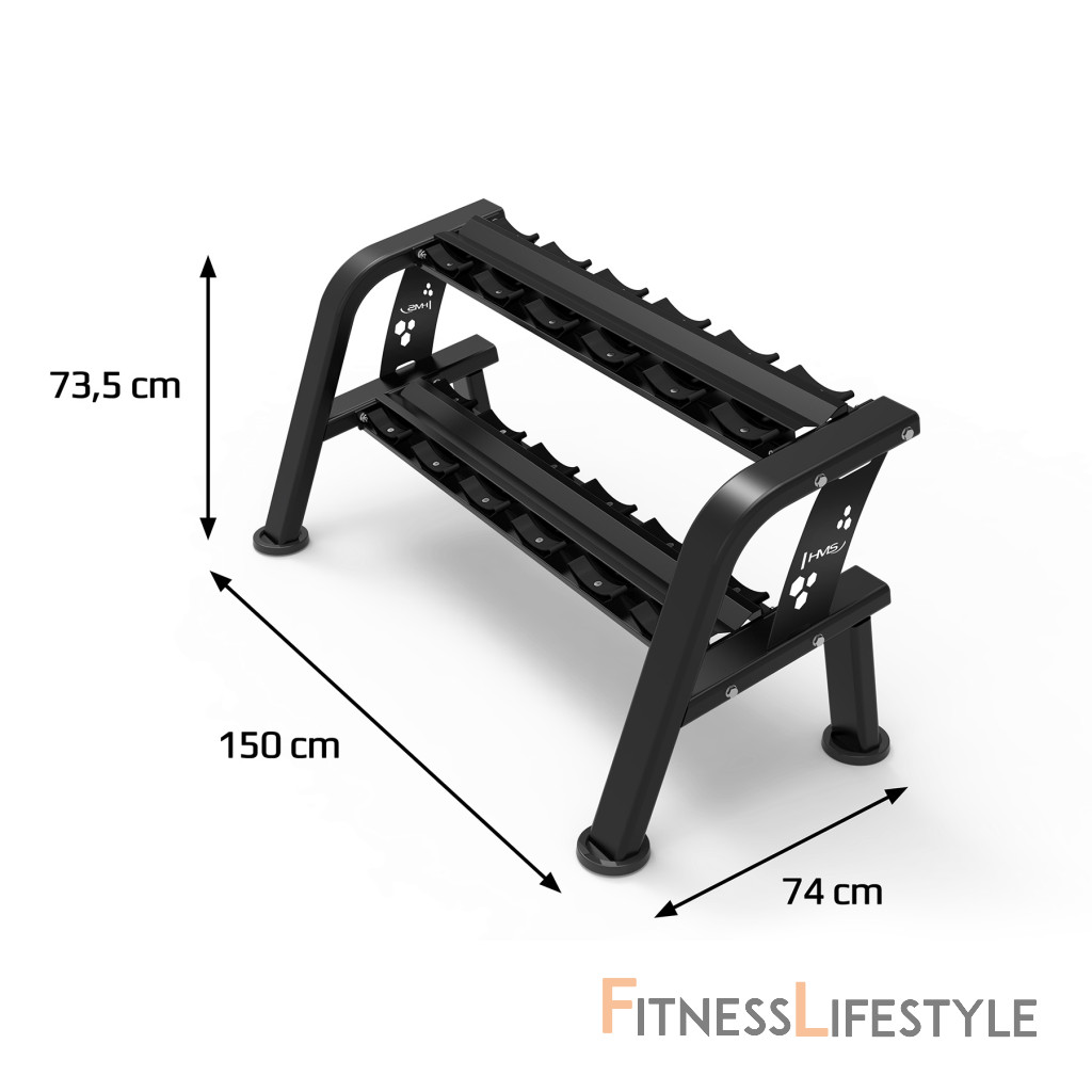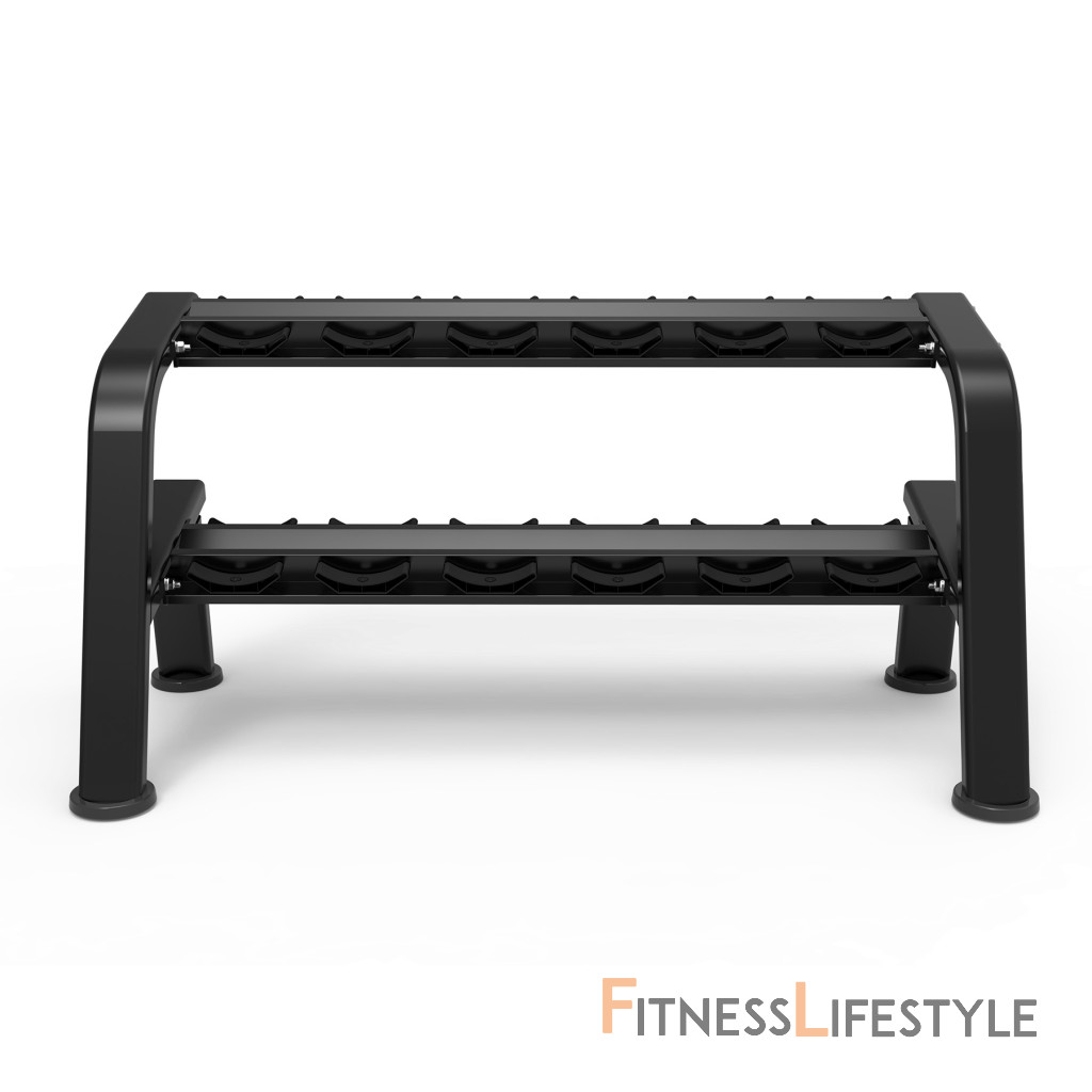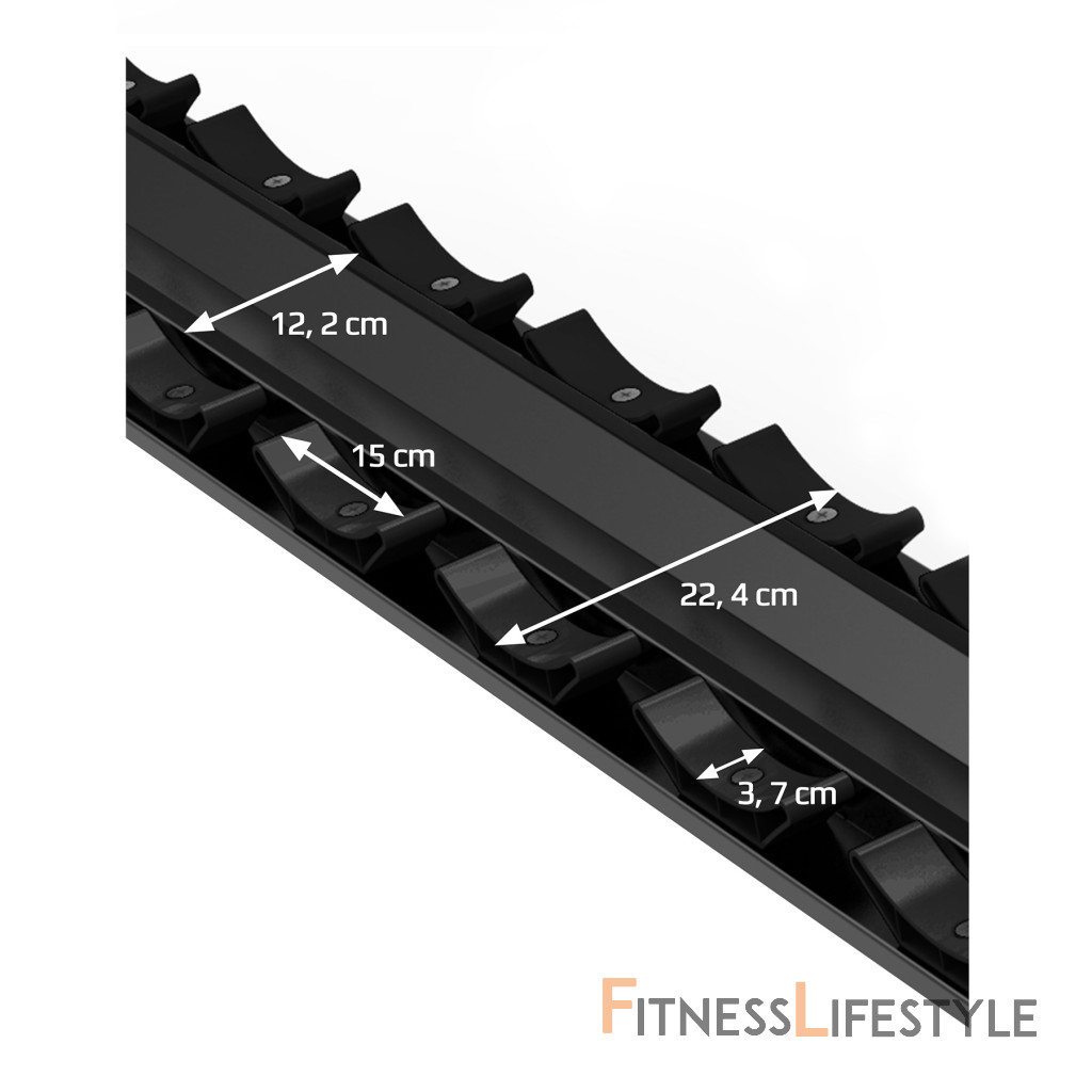 Str48 je robustný a premyslene navrhnutý stojan s dvoma obchodmi, ktorý vám umožňuje uložiť až 12 činiek. Vďaka svojej kapacite a robustnej konštrukcii je ideálny pre fitnes kluby aj pre domácu telocvičňu.