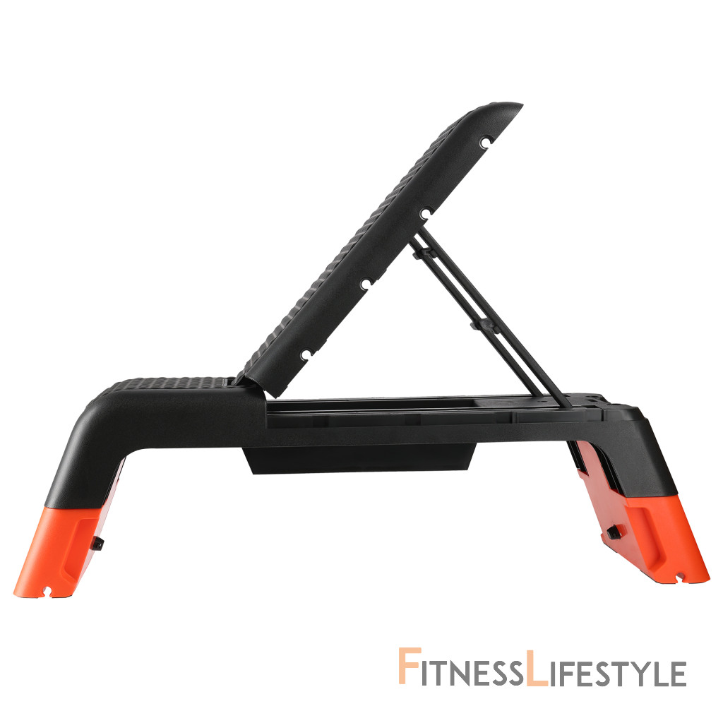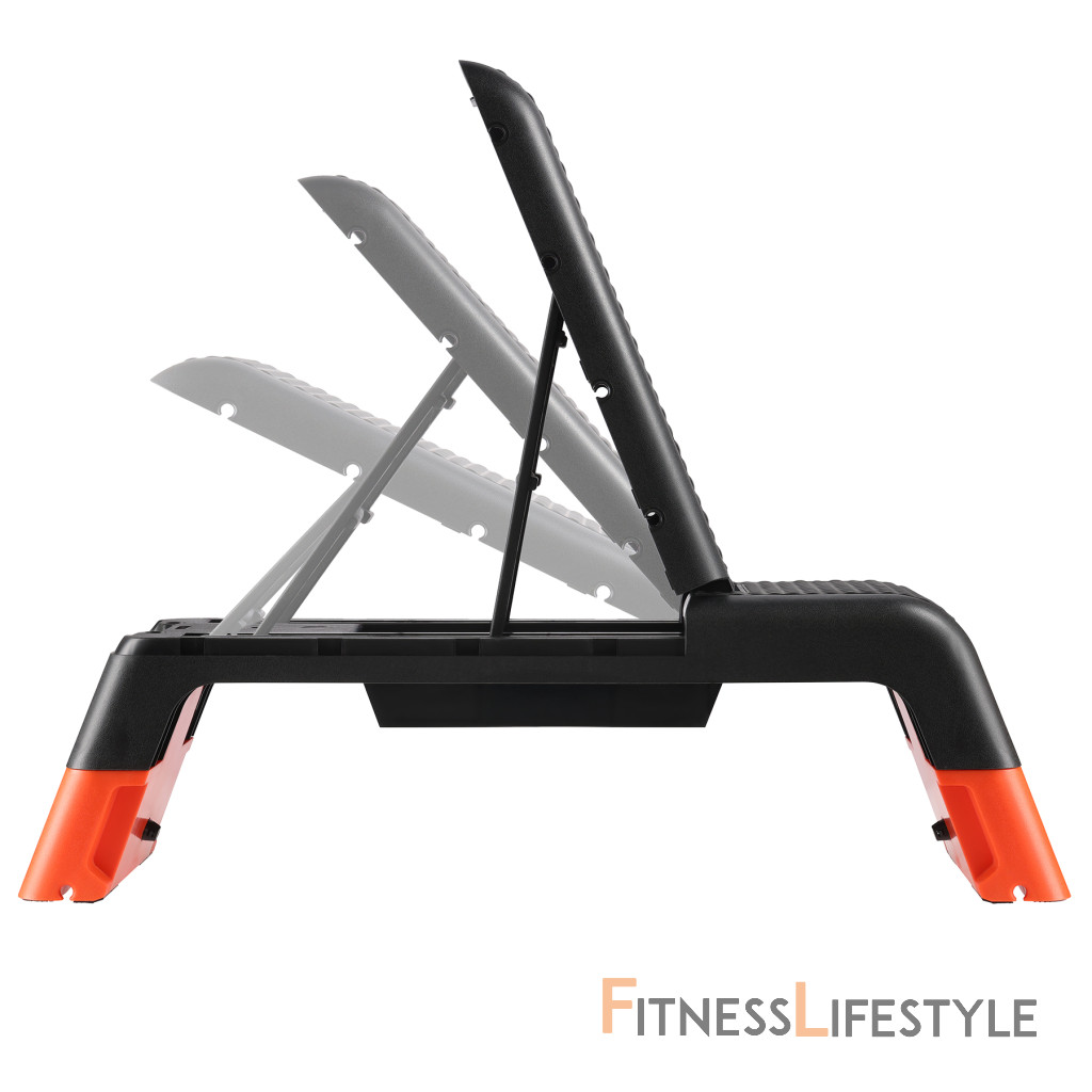 Za pár sekúnd môžete zmeniť krok na plnohodnotnú lavicu! Úprava operadla na tri rôzne uhly vám umožňuje vykonávať širokú škálu výkonových cvičení, ako sú činky alebo guma na odpor. Toto riešenie kombinuje kondíciu s silovým tréningom a umožňuje vám plne využívať potenciál vášho tela.