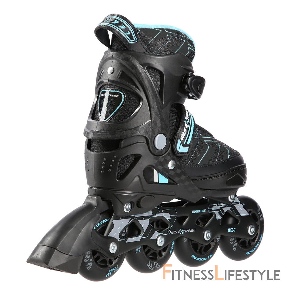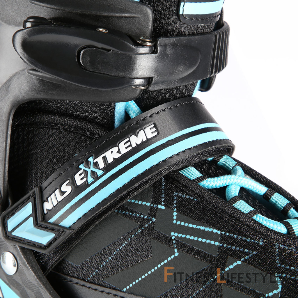 Kolieskové korčule NILS Extreme NA11002 sú určené k rekreačnej jazde začínajúcich a mierne pokročilých korčuliarov po rovných a hladkých chodníkoch, ako napríklad po asfalte. Ľahká a odolná topánka zaisťuje bezpečnosť pri jazde. Systém ventilácie a tvarovaná stielka topánky priamo ovplyvňujú zvýšenie užívateľského komfortu. Jedná sa o model s nastaviteľnou veľkosťou, kedy každá korčule má na výber zo 4 rozmerov. Pomocou jednoduchého riadiaceho systému je možné ľahko a rýchlo nastaviť veľkosť topánky na nohe používateľa. Kolieska s tvrdosťou 82A sú uložené v hliníkovej lište, dobre priliehajú k podkladu a čiastočne pohlcujú nervnosti. Model NA11002 je osadený ložiskami ABEC 7, ktorá sa vyznačujú precíznym spracovaním a nízkym odporom, kedy jazda má dobrú zotrvačnosť a na korčuliach tak možno prejsť dlhú vzdialenosť bez vynaloženia zbytočnej sily.