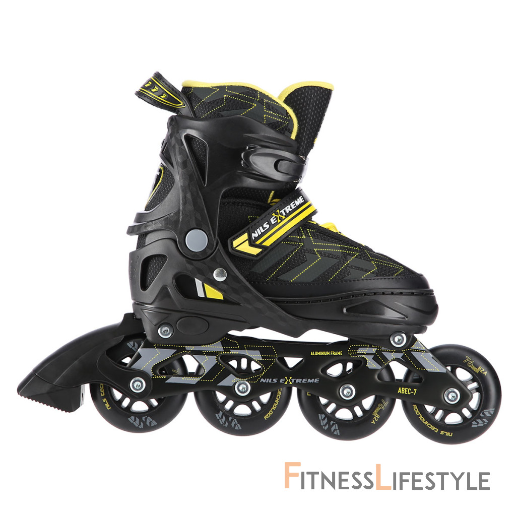 Kolieskové korčule NILS Extreme NA11002 sú určené k rekreačnej jazde začínajúcich a mierne pokročilých korčuliarov po rovných a hladkých chodníkoch, ako napríklad po asfalte. Ľahká a odolná topánka zaisťuje bezpečnosť pri jazde. Systém ventilácie a tvarovaná stielka topánky priamo ovplyvňujú zvýšenie užívateľského komfortu. Jedná sa o model s nastaviteľnou veľkosťou, kedy každá korčule má na výber zo 4 rozmerov. Pomocou jednoduchého riadiaceho systému je možné ľahko a rýchlo nastaviť veľkosť topánky na nohe používateľa. Kolieska s tvrdosťou 82A sú uložené v hliníkovej lište, dobre priliehajú k podkladu a čiastočne pohlcujú nervnosti. Model NA11002 je osadený ložiskami ABEC 7, ktorá sa vyznačujú precíznym spracovaním a nízkym odporom, kedy jazda má dobrú zotrvačnosť a na korčuliach tak možno prejsť dlhú vzdialenosť bez vynaloženia zbytočnej sily.