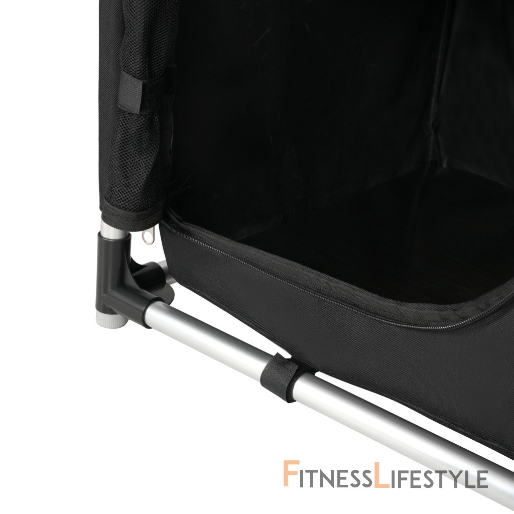 Predná časť je vybavená dvoma priedušnými panelmi zo sieťoviny, ktoré sú pripevnené na zipsy. Toto riešenie chráni obsah hmyzu a zároveň zabezpečuje dokonalé vetranie - nemusíte sa obávať nepríjemných zápachov alebo vlhkosti.