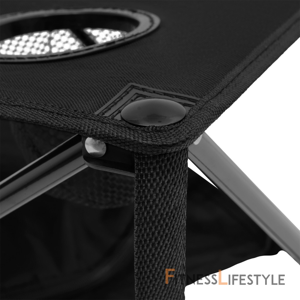Pod skladovacím povrchom tabuľky je úzky priestor s funkciou chladiaceho vrecka - ideálny na skladovanie nápojov a občerstvenia pri správnej teplote a v horúcich dňoch. Je to skvelý nástroj na dlhší pobyt ďaleko od chladničky. Okrem toho bola plocha stola vybavená štyrmi šálkami pre šálky alebo fľaše, čo výrazne zvyšuje pohodlie stravovania a relaxácie.