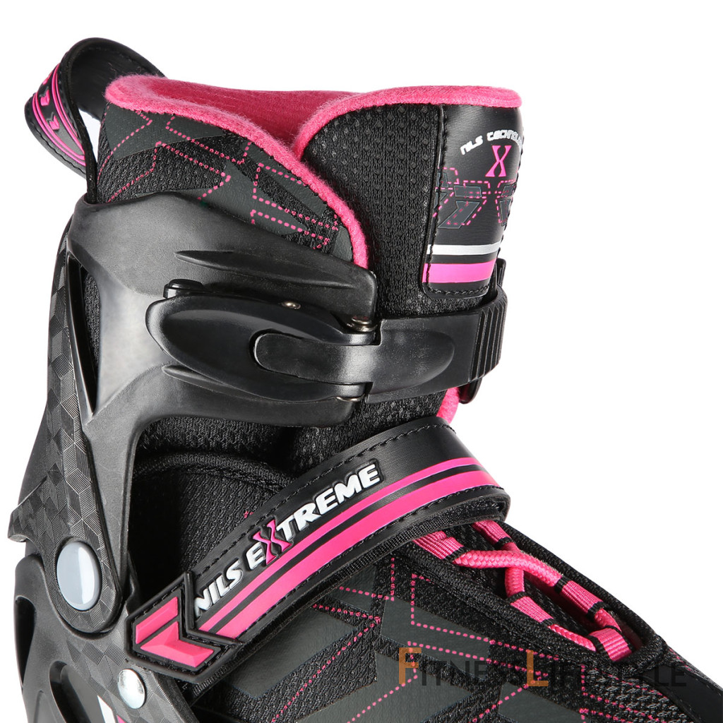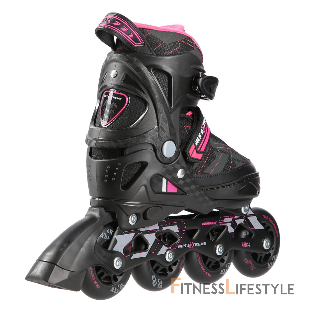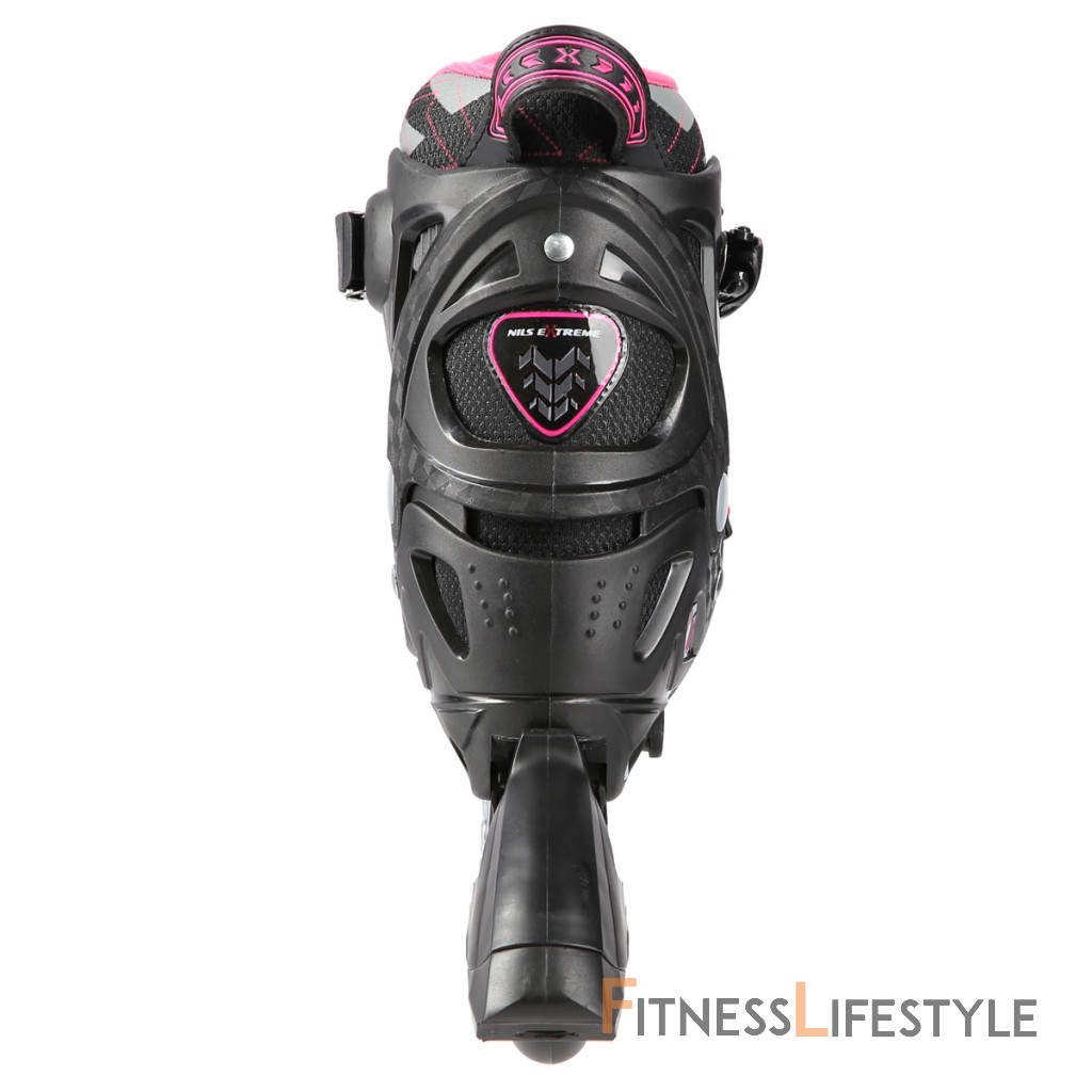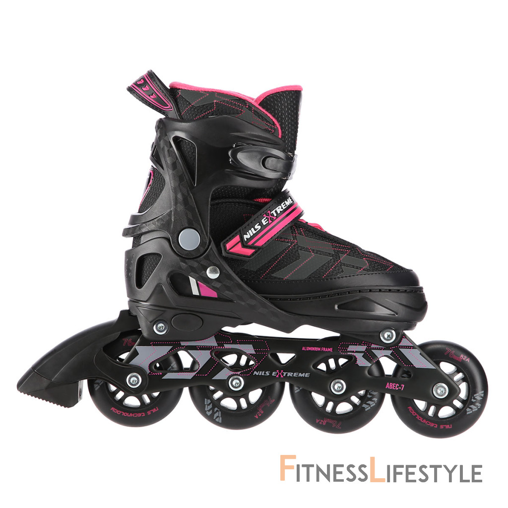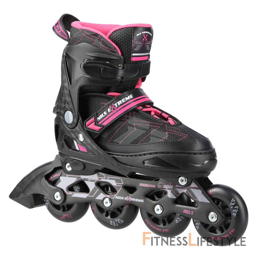 Kolieskové korčule NILS Extreme NA11002 sú určené k rekreačnej jazde začínajúcich a mierne pokročilých korčuliarov po rovných a hladkých chodníkoch, ako napríklad po asfalte. Ľahká a odolná topánka zaisťuje bezpečnosť pri jazde. Systém ventilácie a tvarovaná stielka topánky priamo ovplyvňujú zvýšenie užívateľského komfortu. Jedná sa o model s nastaviteľnou veľkosťou, kedy každá korčule má na výber zo 4 rozmerov. Pomocou jednoduchého riadiaceho systému je možné ľahko a rýchlo nastaviť veľkosť topánky na nohe používateľa. Kolieska s tvrdosťou 82A sú uložené v hliníkovej lište, dobre priliehajú k podkladu a čiastočne pohlcujú nervnosti. Model NA11002 je osadený ložiskami ABEC 7, ktorá sa vyznačujú precíznym spracovaním a nízkym odporom, kedy jazda má dobrú zotrvačnosť a na korčuliach tak možno prejsť dlhú vzdialenosť bez vynaloženia zbytočnej sily.