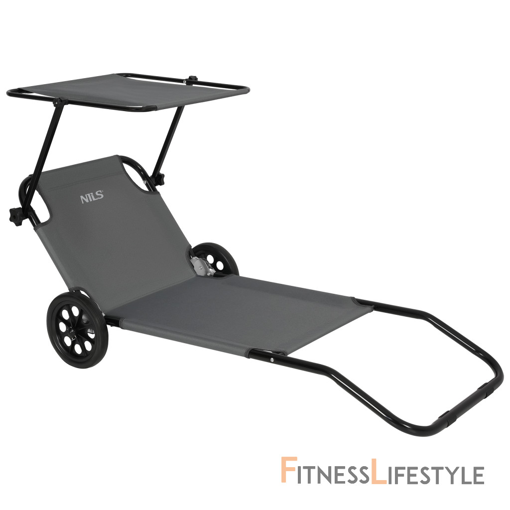Na zadnej strane konštrukcie sú dva prepravné kolesá, ktoré výrazne uľahčujú pohyb slnečných ležadiel. Stačí zdvihnúť prednú časť a viesť ho ako kufor - bez zdvíhania alebo demontáže. Je to užitočné najmä na pláži, v tábore alebo v prípade, že potrebujete rýchlo presunúť ležadlá na slnečné alebo zatienené miesto.
