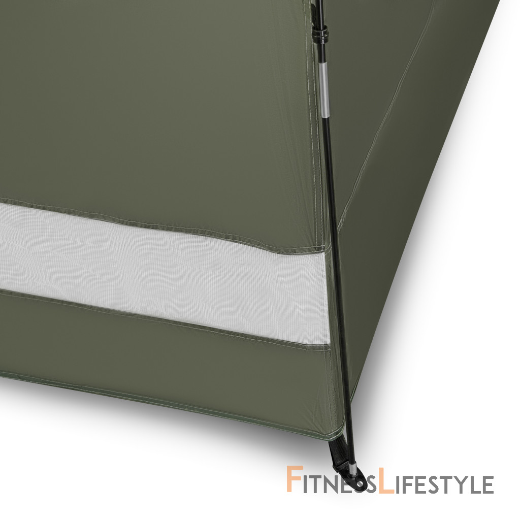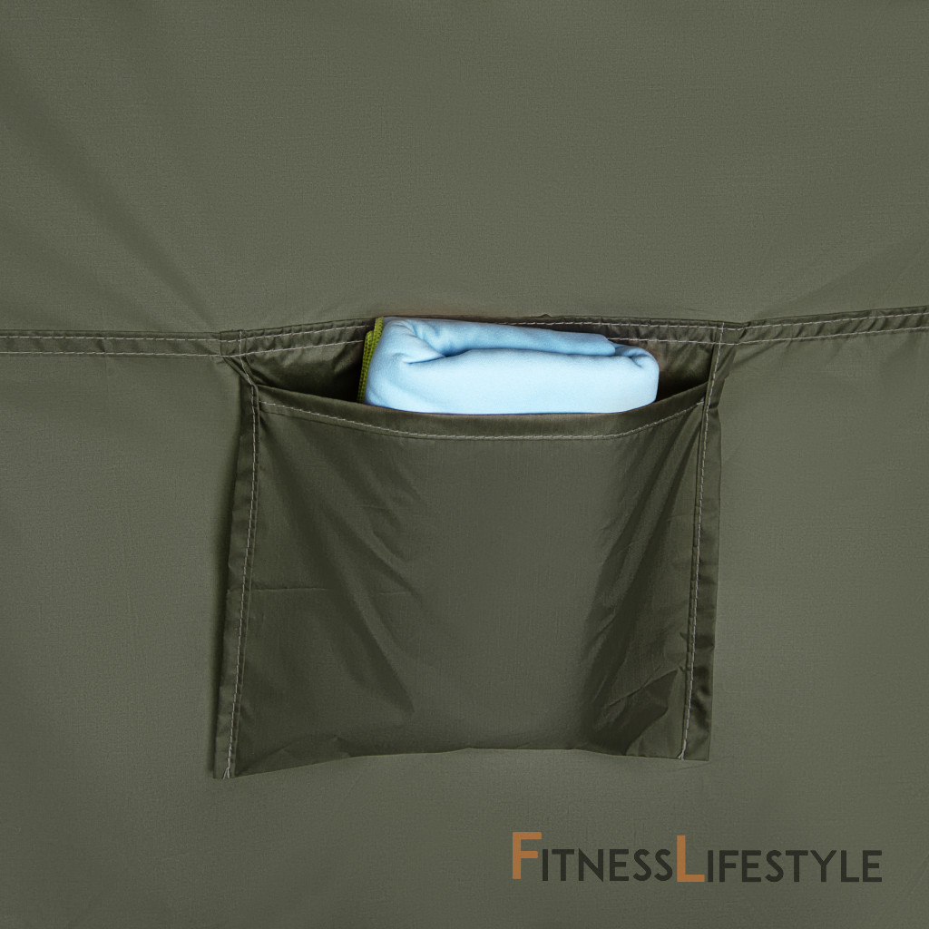 NC3025 je vyrobený z materiálov s vyšším odporom voči nepriaznivým poveternostným podmienkam. Polyester 190T s povlakom PU zaisťuje odolnosť proti vode až do 3 000 mm vodného stĺpca, ktorý spoľahlivo chráni používateľa pred dažďom. Výsledkom je, že meniaca sa kabína sa ukáže nielen v lete, ale aj počas chladnejších a variabilných dní.