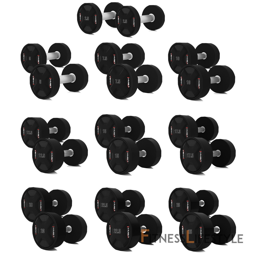 Sada polyuretánových činiek s jedným rukávom HMS HPC set 2 x 2,5 - 25 kg CPU - 275 kg | Fitness Lifestyle