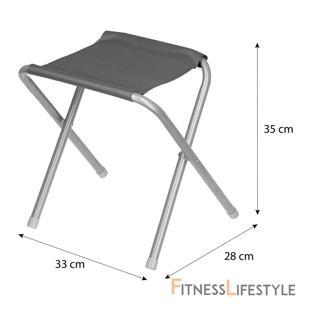 Štyri stoličky majú hliníkový rám a vankúše vyrobené z odolného polyesteru. Po usporiadaní má každá stolička výšku 35 cm a oblasť sedadla je 27 x 25 cm. Po skladaní sú stoličky uložené v zloženom stole (aktovka), ktorá ukladá priestor a robí celý nastavený veľmi kompaktný celok.