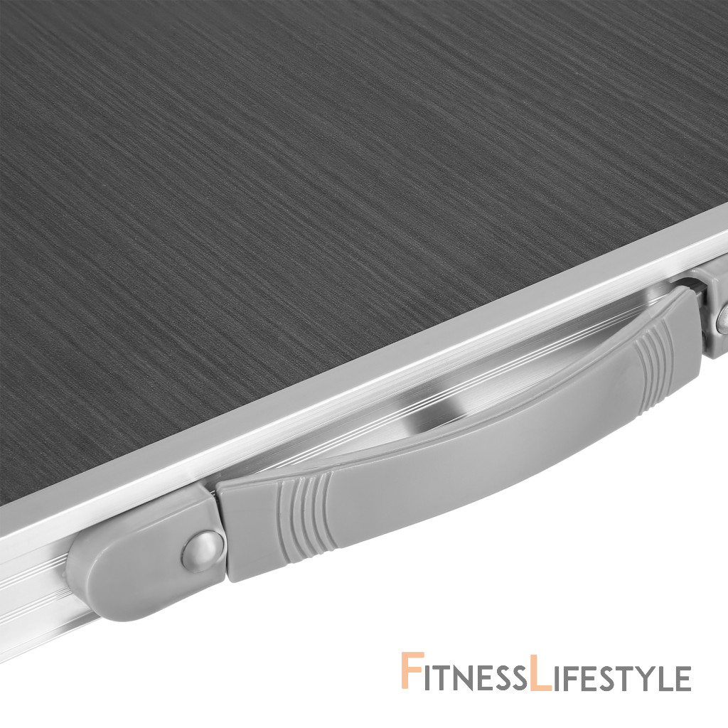 Tabuľka má dosku s rozlohou 120 x 60 cm, ktorá je vyrobená z laminovaných dosiek MDF. Silná, ľahká hliníková konštrukcia zaisťuje trvanlivosť a stabilitu. Výška tabuľky je možné upraviť v troch úrovniach (55, 61,5 a 70 cm), čo umožňuje pohodlné použitie deťom aj dospelým. Tabuľka je jednoducho zložená - po nohách a „skladaní“ na polovicu sa vytvorí kompaktná aktovka s rozmermi 60 x 60 x 6,5 cm. Na boku je praktická rukoväť, ktorá uľahčuje prepravu celej sady.