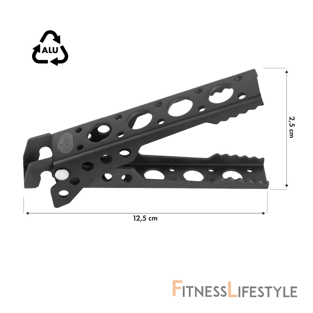 Vďaka dĺžke iba 12,5 cm sa kliešte ľahko zmestia do vrecka, batohu alebo priehradky v aute. Šírka 2,5 cm zaisťuje určitú a pohodlnú priľnavosť, ktorá vám umožňuje bezpečne uchopiť horúce nádoby bez rizika popálenín. Kompaktná veľkosť uľahčuje skladovanie a rýchle použitie kedykoľvek počas kempingu.